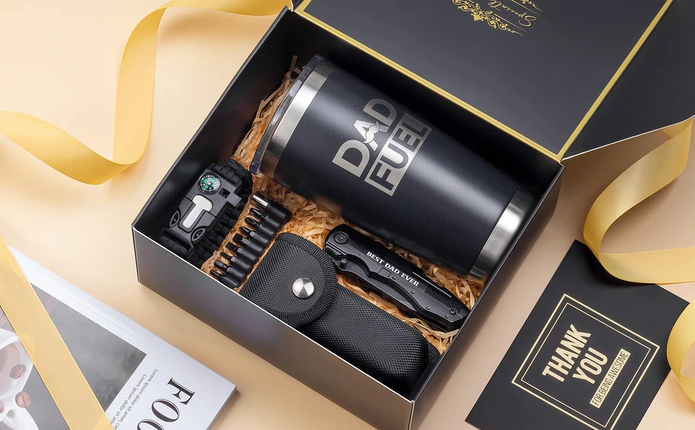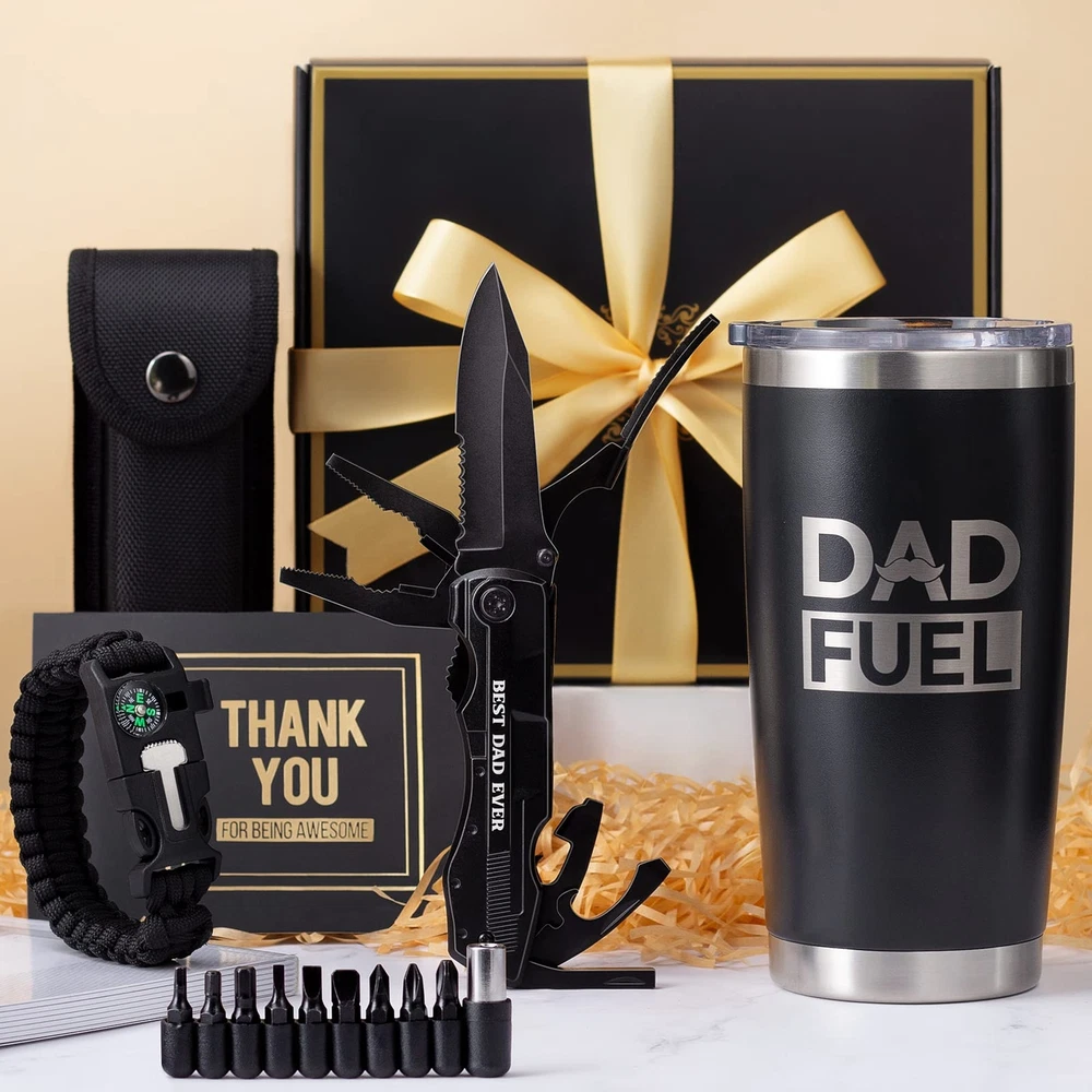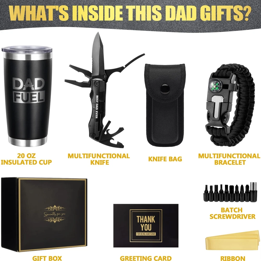 Fathers Day Gift Box -Tumbler,Knife,Bracelet for Dad from Daughter Son Wife -New THOUGHTFUL FATHERS DAY GIFTS: This fathers day gifts who have everything come with 1 gift tumbler 20 OZ with Box, 1 Greeting Card, 1 Gift Set Box with Silk Ribbon, 1 Camping Knife, 1 Bracelet, perfect for your beloved ones who like camping, hiking, home maintenance. This fathers day gifts from daughter is also great for Father's Day, Dad's Birthday, Thanksgiving, Christmas, Anniversaries, Holidays. Show dad with this thoughtful gifts for fathers day that will make him life easier and more fun. SAFE & PREMIUM MATERIAL: Fimibuke 20oz tumbler with lid is made of 18/8 stainless steel, comprising BPA-FREE, food-safe and recyclable materials. This travel tumbler is not dishwasher safe, please handwash them. This fathers day gifts from wife contains an awesome all in one tool, which is made of sturdy stainless steel, easily fit for outdoors. The survival bracelet are made of sturdy parachute cord. This birthday gifts for men are packed in a premium gift box, exquisite and high-quality. VACUUM INSULATED TUMBLER: With double-walled vacuum insulation, these father's day gifts for dad insulated cups can preserve beverage temperature up to 24 hours for cold and 12 hours for hot. In addition, the double walled design and powder coated finish make the dad cups sweat-free. Also, the top mouth is wide enough for refilling and inserting ice cubes or fruits. This dad gifts cup is designed to preserve the quality and temperature of beverage such as coffee, wine, champagne, sodas. BEST PRACTICAL GIFT IDEA: The gifts for father camping knife has a 9 in 1 screwdriver bits set for many tasks/jobs. This cool gadget combines a wire cutter, bottle opener, can opener, needle nose pliers and a sharp knife. Easy to carry with the nylon pouch included. It’s a year round useful tool gifts for dad who enjoy home improvements, Camping, Fishing, Hiking, Adventuring, Outdoor activities. This fathers day gifts from son will definitely give your dear dad a big surprise. IDEAL GIFT GIVING & GUARANTEE: A great Father's Day Gifts for your lovely dad, father, men, husband. Just choose these amazing Fimibuke dad gifts packed in a beautiful gift box to keep your beloved ones happy and and enjoy what they like. These gifts for men are a great choice for Father's Day, Dad's Birthday, Thanksgiving, Christmas or Anniversaries gift. Our Team offers superior customer service, high-quality material, and a life-time warranty. Any questions, send us your issues for solution. Are you ready to give your dear father/husband a big surprise on Father's day or Birthday?Do you still feel it confused to choose a great gift which can show out your caring and sincerity?Are you looking for a thoughtful and multifunctional gifts for your beloved ones on this special day?Fimibuke gifts for men is a great choice for Father's Day, Dad's Birthday, Thanksgiving, Christmas, which not only contains a travel tumbler, but also the all-in-one tool, multifunctional bracelet, great for outdoors activities such as camping, hiking, or DIY.PACKAGE INCLUDED1 X 20oz vacuum insulated tumbler 1 X Camping knife with 9 screwdriver bits set1 X Knife nylon bag1 X Multifunctional bracelet1 X Greeting card1 X 3.3 ft ribbon1 X Gift boxMULTI-USE PRACTICAL GIFTSDouble Wall Insulation Tumbler: Made of premium food-grade 18/8 stainless steel for safe drinking, and sturdy steel for activities. Keep beverages cold for 24 hours and hot for 12 hours.Practical Folding Knife: Made of high-quality stainless steel and has strong hardness and corrosion resistance.Multifunctional Bracelet: Used as fire starter, whistle, compass, saw blade.Versatile Gift IdeasPerfect Gifts for dad, father-in-law, new dad, husband from daughter, son, daughter-in-law, son-in-law, wife, friends on Father's Day, Christmas, Birthday, Thanksgiving, Valentine and other various festivals.Fathers Day Gifts from Daughter/Son/WifeFather's Day Gifts for DadBirthday Gifts for Men/DadGift Box for Men/DadDad Gifts from Daughter/SonGreat First Fathers Day GiftsGifts For Dad for Fathers DayFathers Day Gifts for Husband Shipping We offer FREE shipping on all orders! We ship within Three business days of payment, usually sooner. We use a selection of shipping services such as UPS, FedEx, USPS etc. We only ship to the lower 48 states, no APO/FPO addresses or PO Boxes allowed. Local pickups and combined shipping options are not provided at this time. Return You can return a product for up to 30 days from the date you purchased it. Any product you return must be in the same condition you received it and in the original packaging. Please keep the receipt. Payment We accept payment by any of the following methods: PayPal Please pay as soon as possible after winning an auction, as that will allow us to post your item to you sooner! Feedback Customer satisfaction is very important to us. If you have any problem with your order, please contact us and we will do our best to make you satisfied. Contact Us If you have any queries, please contact us via ebay. We usually respond within 24 hours on weekdays. Please visit our eBay store to check out other items for sale! Thank you for shopping at our store.