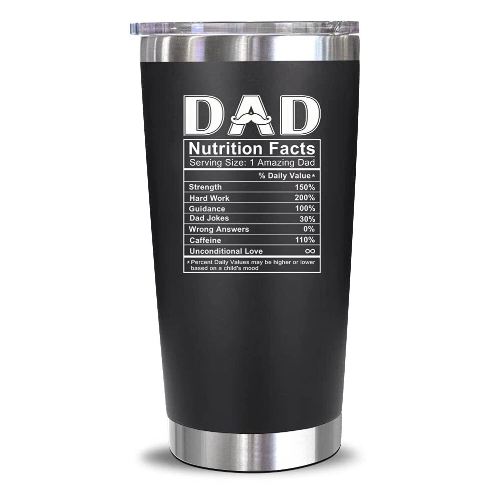 AWESOME GIFT FOR DAD – This leak-proof tumbler is a sure hit for fun-loving and cool fathers. It makes a fantastic choice for Father’s Day, birthday gifts for dad, best dad gifts, husband birthday gift ideas, or just those special parents or siblings in your life. FOR POPS' EVERY MILESTONE – Show your father how much you appreciate him with this humorous tumbler. It's a must-have for every beer, wine, tea or coffee-loving dad. Get this for your pops on his 30th, 40th, 50th, 60th, 70th, 80th, or even on his 100th birthday! It also makes a terrific choice for Christmas, Thanksgiving, retirement, Valentine's Day, and Father's Day events. DOUBLE-WALL VACUUM INSULATION – Made with double-wall vacuum insulation, this 20 oz flask can retain any drink’s ideal temperature for longer. Make it your go-to container for piping hot coffee, iced cold fruit teas, juice, champagne, smoothies, sodas, ice cream, energy drinks, and milkshakes. BPA-FREE AND DURABLE – These tumblers come with a BPA-free, convenient drink lid. Crafted with 18/8 food stainless steel these tumblers are durable, unbreakable, sweat proof, rust resistant, and perfect for backyard barbecues, hanging out at the pool, or enjoying a hot day at the beach with friends. GIFTS FOR DAD FROM DAUGHTER, SON, – Let your dad enjoy his favorite drinks no matter where he is with this stainless steel tumbler. Sturdy and leak-proof, it’s great for both outdoor and indoor use. Bring this tumbler with you next time you go to a picnic, hiking adventure, RV tour, beach outing, or fishing trip.