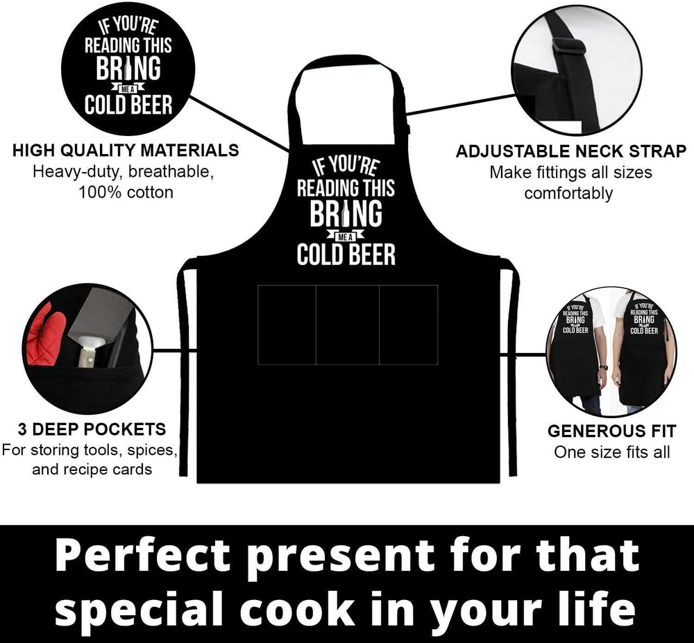 Fathers Day Gift For Men, Dad, Husband, Him - Aprons For Men With Pockets - Funny Gifts For Men, Dad, Husband, Boyfriend, Him, Brother, Uncle - Grill Cooking BBQ Kitchen Chef Apron Description and features LIVEN UP YOUR COOKING TIME - Make meal prep more fun and interesting with this statement kitchen apron. Your loved ones will definitely get more excited to have a taste of your creations! FUNNY APRON FOR ALL OCCASIONS - Get a chuckle out of your guests no matter the occasion. It’s fantastic for the Mothers Day, Fathers Day, Christmas, holidays, birthdays, reunions, camping trips, housewarming or poolside parties! Perfect gifts ideal for dad, mom, husband, wife, her, him, boyfriend, grandma, grandpa, gigi, friends, brother, sisters, daughter, son, daughter, uncle, aunt, coworkers. VERSATILE 3 POCKETS - Our apron has 3 deep pockets for storing tools, spices, and recipe cards. Each one is strategically positioned where it’s most convenient to access. 100% COTTON & MULTI-PURPOSE USE - Crafted from heavy-duty, breathable 100% cotton, this chef apparel lets you cook comfortably. Apron is perfect for cooking, grill, BBQ, camping, barbecue picnics, taco nights, sushi parties, etc and even your everyday meals. GENEROUS - This apron is perfect for both pros and devoted homemakers. It measures in at 30.5”x 28.3” and has 45” waist ties and an adjustable 28” neck strap. Return Policy ⦿ All our products come with a 30-Day Return Policy. If you would like to return your item and you are within 30 days of the purchase, and it is still in its original condition, you can return the item by contacting us through eBay messaging. ⦿ If you are not 100% satisfied, please let us know the Detailed Problem,We will give you a 100% satisfactory solution ⦿ If you received an incorrect, damaged, defective, or item not as described, contact us for a partial/full refund or replacement on our cost. ⦿ Free Shipping and Free Return 30-Days Money Back Guarantee. ☎ For all returned products, buyers MUST contact us for the returning address. Shipping ⦿ We do not ship to a different address. we will ship to the address you provide on the ebay only. Please check your address before purchase. ⦿ It should take 2-4 business days for the product to reach your destination. ⦿ If the product doesn't reach your destination within the time limit, please give it an additional 1-2 business days in case of postal delays and/or possible technical issues. ⦿ We use a selection of shipping services such as UPS, FedEx, USPS etc. ⦿ We ship only to the 48 contiguous states of America. We do not ship to Hawaii, Alaska, US Protectorates, APO/FPO addresses. Local pickups are not offered. ☎ If it takes any longer than that, please do not hesitate to contact us to resolve the issues. Contact us ☎ Please contact us via eBay message. And your message will be replied within 1 business days. For any queries, please feel free to contact us, we will get back to you as quickly as possible. Customer 100% satisfaction is our first priority and goal. We are always working hard for maintain high standards of excellence and resolve your problem in best way. So your POSITIVE FEEDBACK is very important. If you have any problem of the item, please feel free to let us know before leaving your feedback. We will try our best to solve your problem. About us We are here to give you quality products, competitive pricing and amazing service in order to make sure you get the best deal online, Thank you for your business and the opportunity to serve you.