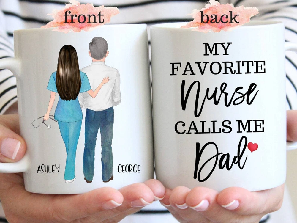 Fathers Day Gift From Daughter Nurse Dad Mug Nurse Father Gift Personalized Product Details.. This high quality 11oz. ceramic white mug has a premium hard coat that provides crisp and vibrant color reproduction sure to last for years. Perfect for all hot & cold beverages. The highest quality printing possible is used. It will never fade no matter how many times you wash it. Material: 100% Ceramic. Print both sides. Dishwasher and Microwave Safe. High Gloss + Premium White Finish. Printed in the U.S.A. Personalized & Custom. We support personalized and custom mug to add custom, when placing an order, you can add notes to the "order note" in shipping address section. Also you can contact us directly via message. Shipping Info. Ready to ship in 1 to 2 business days, All products are made-to-order and proudly printed in the United States. Shipped by USPS and DHL, You will receive your order in 5-7 days. Replace & Refund. All products are defective during shipping broken, chipped will be replaced free of charge. You are not satisfied with the product, we will refund 100% money to you. If any other issues arise, please do not hesitate to message, we would be more than happy to assist you.