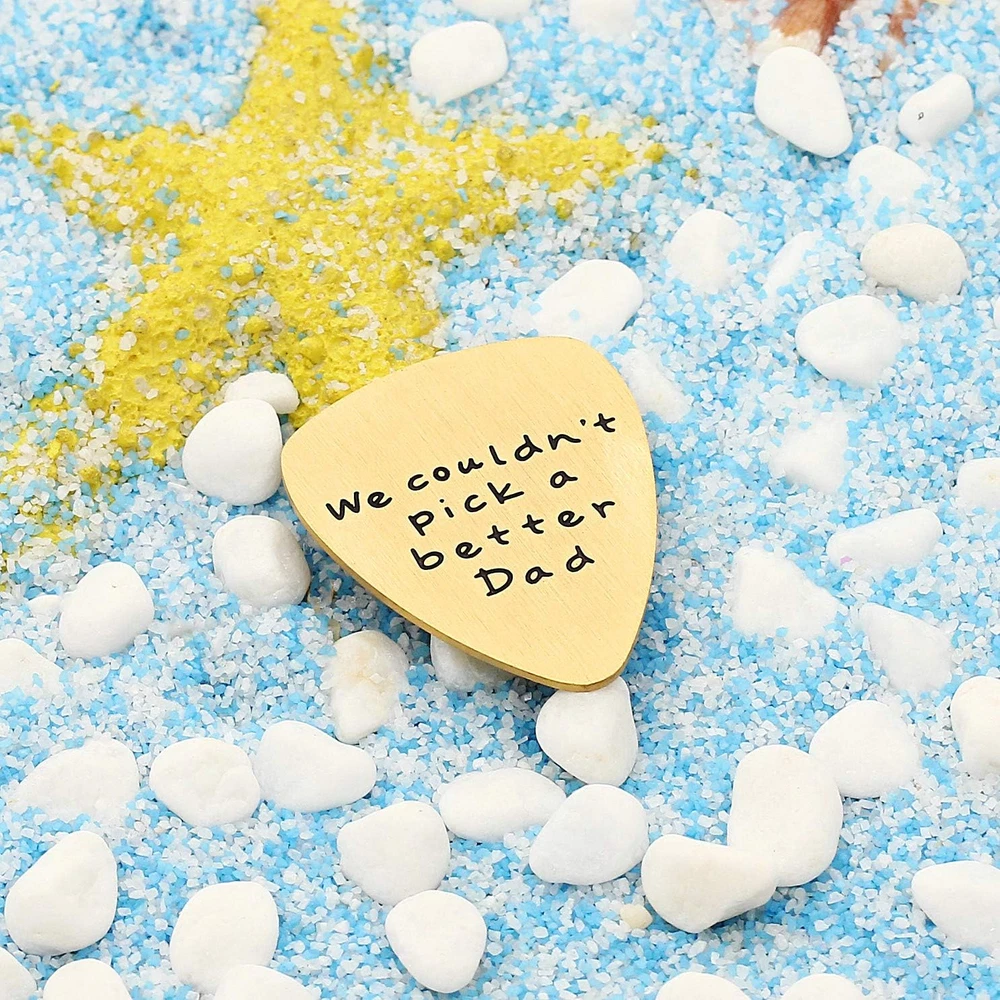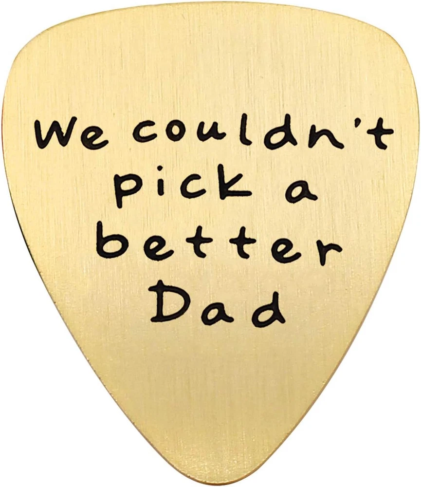 Fathers Day Gift Mens I Couldn'T Pick a Better Dad Guitar Pick Custom Gift for Daddy Papa Stainless Steel (Gold We Could) If you need engraving the any words please choose the option - Personalized Back ,and send the message to tell us which you want engraved at back,like name,date,best wishes... 3Colors - Base/Gold/Rose Gold; I Couldn't Pick A Better Dad Fathers Day Gift, Gift for men, Guitar Pick, Custom Guitar Pick, Gift for Papa From Daughter Son Stainless steel - Meet rigid safety and non-toxic materials standard ,no distortion, no damp, no rust PERFECT GIFT for DAD not just for father's day birthday but for any time of the year!The love between father and daughter ,father and son is forever! The best gift for Father Daddy Papa! - I Couldn't Pick A Better Dad - For Men ! Unique design Guitar Pick ,Gift for Dad! Condition :100% New,High Quality! Material :Stainless Steel Packing Include :1pcs Guitar Pick/key chain(Free jewelry bag) 3.5 inches x 5.1 inches x 0.4 inches. Weight: 0.81 oz Item model number JT0001BP Style Personalized, Musical Color Gold We Could Brand lauhonmin Material Stainless Steel Material Type Stainless Steel Compatible Devices Guitar Item Weight 0.81 ounces Color Name Gold We Could Is Discontinued By Manufacturer No Package Dimensions 5.1 x 3.5 x 0.4 inches Size Small