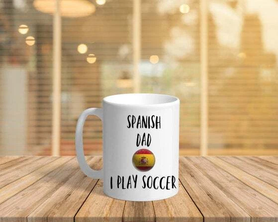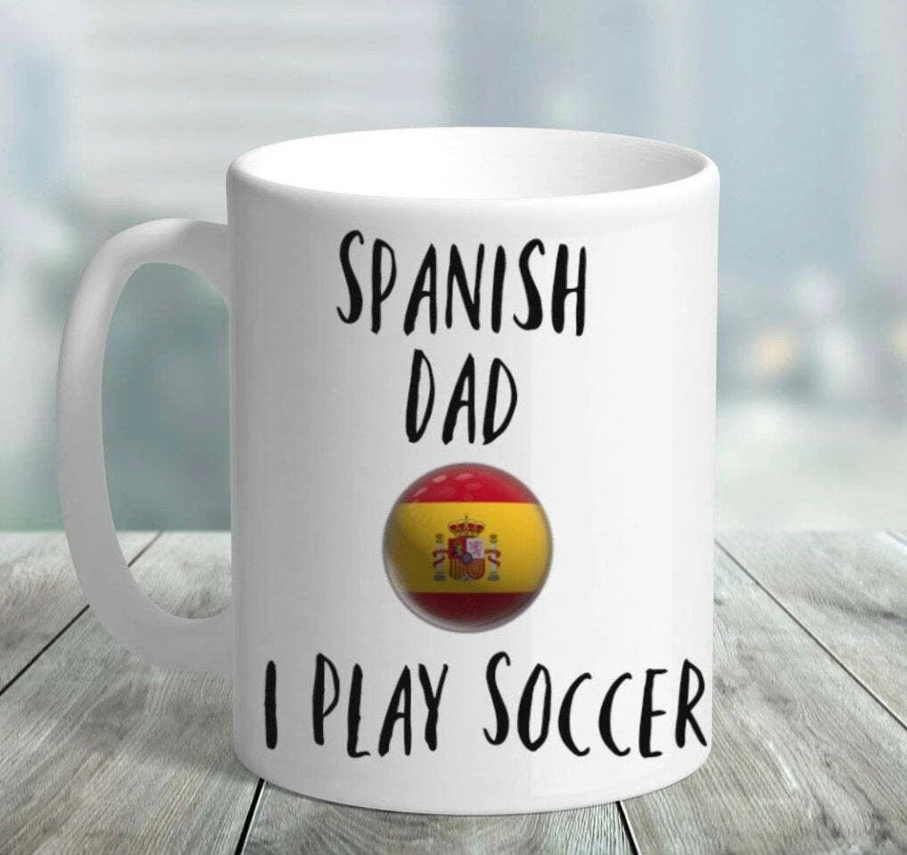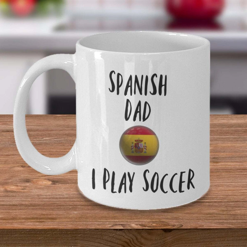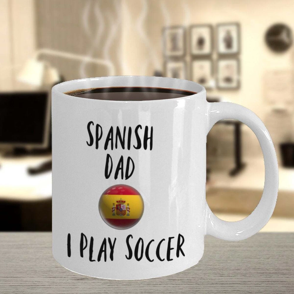 Fathers Day Gift Mug Spanish Dad I Play Soccer Coffee Mug Ceramic Gift Mug Product Details.. This high quality 11oz. ceramic white mug has a premium hard coat that provides crisp and vibrant color reproduction sure to last for years. Perfect for all hot & cold beverages. The highest quality printing possible is used. It will never fade no matter how many times you wash it. Material: 100% Ceramic. Print both sides. Dishwasher and Microwave Safe. High Gloss + Premium White Finish. Printed in the U.S.A. Personalized & Custom. We support personalized and custom mug to add custom, when placing an order, you can add notes to the "order note" in shipping address section. Also you can contact us directly via message. Shipping Info. Ready to ship in 1 to 2 business days, All products are made-to-order and proudly printed in the United States. Shipped by USPS and DHL, You will receive your order in 5-7 days. Replace & Refund. All products are defective during shipping broken, chipped will be replaced free of charge. You are not satisfied with the product, we will refund 100% money to you. If any other issues arise, please do not hesitate to message, we would be more than happy to assist you.