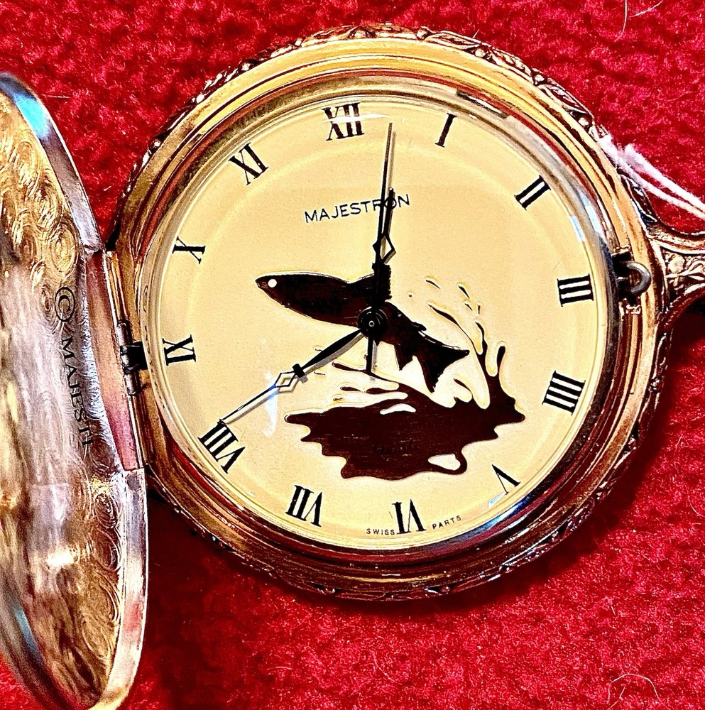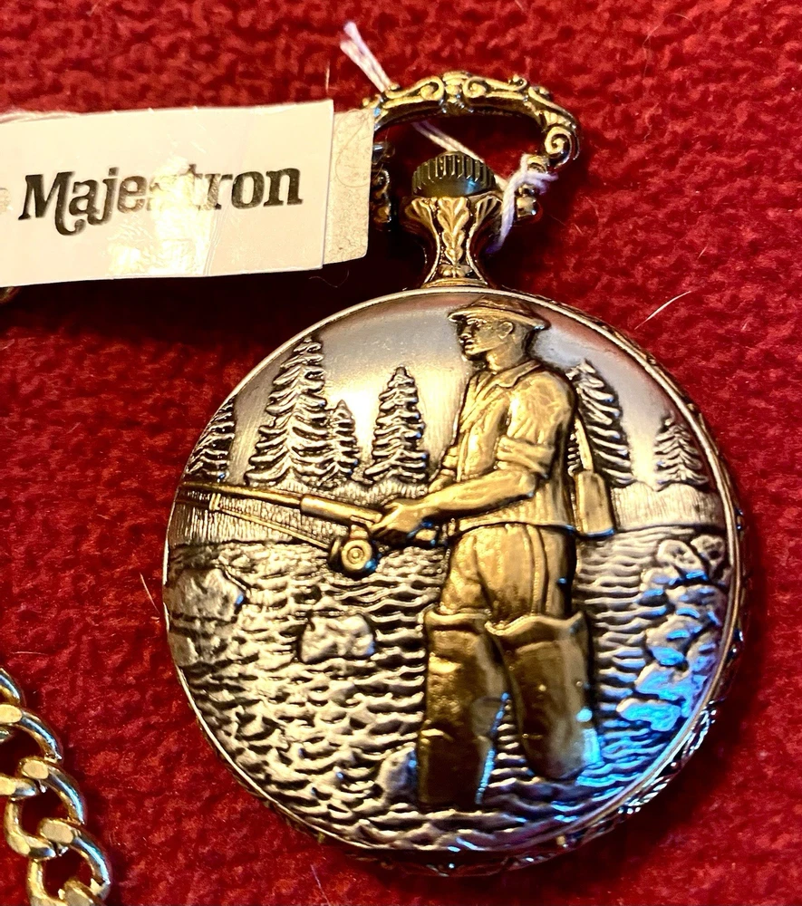 This Vintage Antique Father's Day Dad Majestron Men's Fishermen Pocket Watch in Gold & Silver is a classic and stylish accessory for men. With a casual style and a unique design, this pocket watch is perfect for adding a touch of charm to any outfit. The brand's antique nature adds a sense of nostalgia and historical significance to this timeless piece. Ideal for Father's Day or a special occasion, this pocket watch is sure to be a treasured item for any dad. *** Needs new Battery ***
