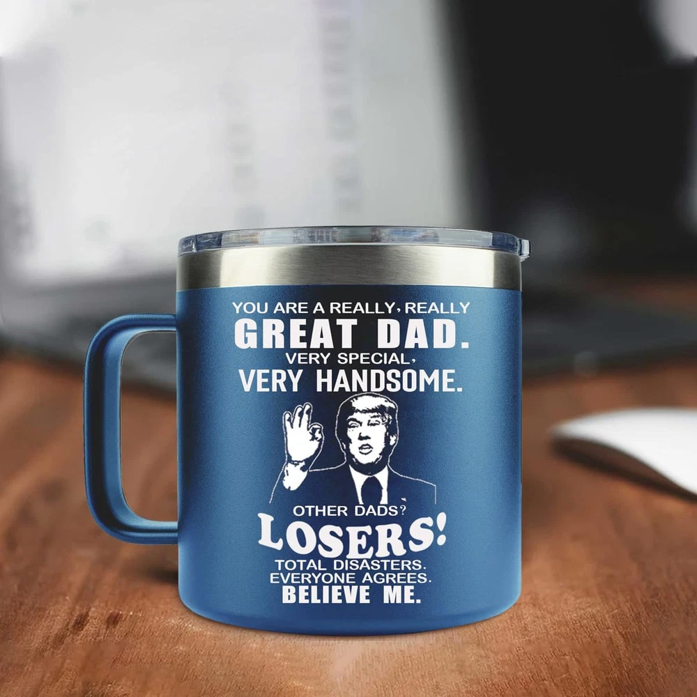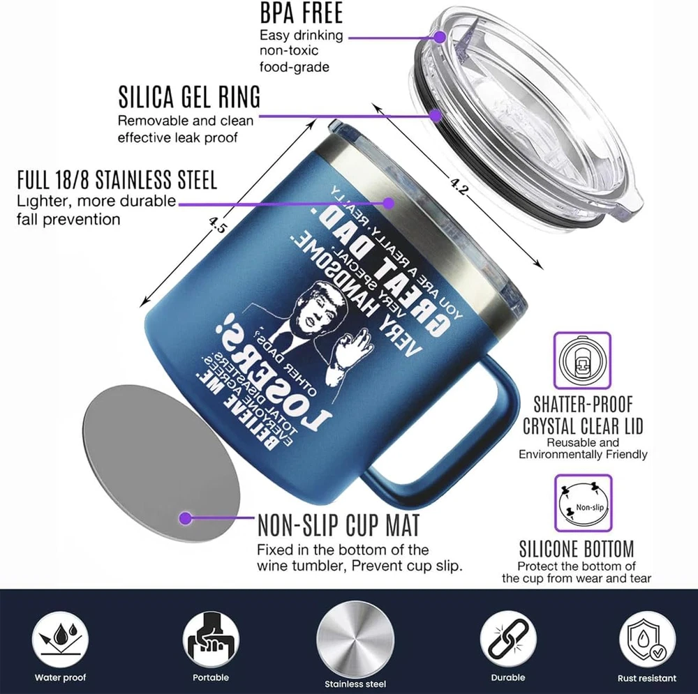 Fathers Day Gifts for Dad From Daughter Son Presents for Father Blue Tumbler Mug Funny GIFTS:The cup is very suitable for birthday,anniversary,Valentine's Day,Thanksgiving Day,Father's Day,Christmas and other important holiday or occasion to give to father. GIFT FOR ANY OCCASION:Perfect for office,party,vehicle and home.Imagine your father drinks coffee,water,beer from his new tumbler,He will tell you that you found he favorite gift! HIGH QUALITY:Featuring a leakproof cap.The cup body is made from food-grade stainless steel,double-wall vacuum,durable,unbreakable,rust-resistant,keep your drinks ice cold longer and warm beverages piping hot. CUP HOLDER FRIENDLY:The Christmas tumbler design will fit most car,vehicle,bike,and boat cup holders and with a 14 oz capacity. TRAVEL READY:Carry around your beverages whether out at the mall,soccer game,or park.Stay refreshed and hydrated no matter what adventure life takes you on. UNIQUE FATHERS DAY GIFTS FROM KIDS The best present for dad at Christmas,Fathers Day gifts from son daughter,dad appreciation gifts,dad birthday gifts,Thanksgiving Day,Halloween,no matter the occasion. Delight he with the meaningful message and beauty of this unique present. VACUUMED INSULATED TUMBLER This tumbler body is made from 18/8 food-grade stainless steel,double-wall vacuum,durable,unbreakable,rust-resistant,Perfect for water, coffee, tea, beer, juice, ice cream, cocktails and more. The tumbler can keep drinking hot 5 hours and keep cold 9 hours. Keep your dad stay hydrated during a long activity day. A DAILY REMINDER OF YOUR LOVE There’s no present more necessary than an insulated tumbler. He will take this tumbler everywhere to enjoy he favorite drink.And proudly let people know this sweet gift is a congratulation from hIS child.The tumbler design will fit most car,vehicle,bike,and boat cup holders. Item model number PC261 Style Modern Number of Items 1 Pattern Letter Print Country of Origin China Theme Christmas, Holiday, Birthday Cartoon Character Gifts, Daily Necessities Unit 1 Product Dimensions 4.2"W x 4.5"H Material Stainless Steel Age Range (Description) Adult Item Weight 10.7 ounces Specific Uses For Product Cold Drinks, Hot Drinks Included Components Holder Reusability Reusable Material Feature Recyclable Material Type Free BPA Free, Lead Free Special Feature Sliding Lid, Leak Proof Shape Cylinder Recommended Uses For Product Travel, Nursing, Home Product Care Instructions Hand Wash Only Occasion Father's Day Capacity 14 fl oz Shipping Welcome to our eBay store, where your satisfaction is our top priority! ? We believe in offering you not just products, but an exceptional shopping experience. Fast shipping is very important for us. Our standard US shipping service is FREE. Your order will be shipped within 1-5 business days upon full payment received. Your order will be delivered within 1-7 business days after the handling time. If you experience any problems, kindly contact us first for prompt assistance and resolution. Returns and payment We offer a 30 days free return policy from checkout winning date. We accept PayPal as a primary payment method, as well as other eBay-approved payment methods. FeedBack Your feedback very important to us, after you get your package and you are satisfied with our service please leave us positive feedback If you encounter any issues with your order, have questions, or need assistance, please reach out to us before leaving any feedback or opening a case. We are committed to providing the best and fastest solutions to ensure your satisfaction. Please visit our eBay store to check out other items for sale! Thank you for shopping at our store.