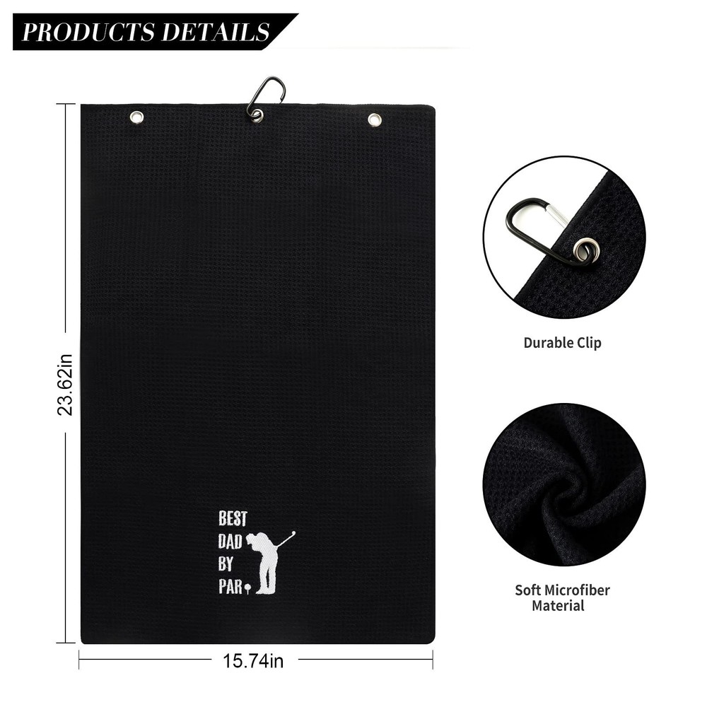 Fathers Day Golf Gifts for Dad from Daughters Wife Son Kids,Funny Dad Gifts,First for New dad,Birthday Gifts for Dad Stepdad,Dad by Par Golf Towel-Black Description and features FUNNY FATHERS DAY GIFTS:If you are looking for a special funny fathers day gifts for your dad who loves golf ,this funny golf towel will be your choice, soft and durable cleaning golf towel which is embroidered in the white thread word:Dad By Par.it will be a funny gifts for your dad or husband,give it to him as a special surprise in fathers day PERFECT SIZE AND WASH CARE:The size of funny towel is measure appro 23.62" x 15.74",Embroidery logo design is aprox 3.5" wide by 4".Machine washable for easy care and cleaning. HIGH QUALITY CLEANING DESIGN:Our dad golf towel gifts design with high quality miccrofiber waffle fabric which can easily removes any dirt,sand and grass.Also design with the aluminum clip that conveniently attaches to golf bag and prevents loose clip and lost towels GOLF GIFTS FOR VARY OCCASION:Our golf dad gifts towel will be suitable for golf courses and any golf game,It's a perfect gifts as fathers day gifts,fathers day gifts from daughter,fathers day gifts from wife,funny fathers day gifts,fathers day gifts from son,first fathers day gifts for new dad,fathers day gifts for dad,fathers day gifts from kids,step dad fathers day gifts,fathers day gifts for husband,first fathers day gifts WHAT YOU WILL GET :1 soft funny golf towel,if you are not satisfied with your purchase, we offer 30 day money back guarantee. please feel free to contact us,we will provide the resolutions. Return Policy ⦿ All our products come with a 30-Day Return Policy. If you would like to return your item and you are within 30 days of the purchase, and it is still in its original condition, you can return the item by contacting us through eBay messaging. ⦿ If you are not 100% satisfied, please let us know the Detailed Problem,We will give you a 100% satisfactory solution ⦿ If you received an incorrect, damaged, defective, or item not as described, contact us for a partial/full refund or replacement on our cost. ⦿ Free Shipping and Free Return 30-Days Money Back Guarantee. ☎ For all returned products, buyers MUST contact us for the returning address. Shipping ⦿ We do not ship to a different address. we will ship to the address you provide on the ebay only. Please check your address before purchase. ⦿ It should take 2-4 business days for the product to reach your destination. ⦿ If the product doesn't reach your destination within the time limit, please give it an additional 1-2 business days in case of postal delays and/or possible technical issues. ⦿ We use a selection of shipping services such as UPS, FedEx, USPS etc. ⦿ We ship only to the 48 contiguous states of America. We do not ship to Hawaii, Alaska, US Protectorates, APO/FPO addresses. Local pickups are not offered. ☎ If it takes any longer than that, please do not hesitate to contact us to resolve the issues. Contact us ☎ Please contact us via eBay message. And your message will be replied within 1 business days. For any queries, please feel free to contact us, we will get back to you as quickly as possible. Customer 100% satisfaction is our first priority and goal. We are always working hard for maintain high standards of excellence and resolve your problem in best way. So your POSITIVE FEEDBACK is very important. If you have any problem of the item, please feel free to let us know before leaving your feedback. We will try our best to solve your problem. About us We are here to give you quality products, competitive pricing and amazing service in order to make sure you get the best deal online, Thank you for your business and the opportunity to serve you.
