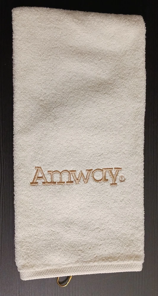 Amway Golf Towel with Grommet and Clip 100% Cotton Made in USA Hanging unused golf towel in like new condition. Clean. Suitable for gift giving. Great Father's Day gift! Measures approximately 16" x 26.5". See photos of the exact item you will receive. Ships from my clean, non-smoking home. Shipping includes tracking. G0104241WESAV