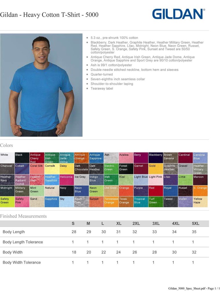 WELCOME TO MY STORE T-SHIRT DESCRIPTION Professionally Digital Printed in the US. Please note that like any other 100% cotton printed t-shirts that you may purchase from any high street fashion store you are advised to wash your garment with care. You can preserve the quality and darkness of your t-shirt's design by washing it with care. Please only machine wash in cold water. Kindly note that some fading may occur. Please kindly note that the sleeves are not folded. The item picture shows folded sleeves for display purposes and you can simply fold the sleeves of your item yourself. If you have any questions, please don't hesitate to ask via ebay direct message Features Size Unisex Heavy Cotton Tee (5000) Classic fit 100% Cotton (fibre content may vary for different colors) Light fabric (5.3 oz/yd² (180 g/m²)) Tear away label Runs true to size # S M L XL 2XL 3XL 4XL 5XL Width, in 18 20 21.97 23.98 25.99 28 30.04 31.97 Length, in 28.51 29.49 30.52 31.5 32.52 33.51 34.49 35.52 Sleeve length, in 7.52 7.76 8.23 8.75 9.26 9.77 10.24 10.75 Refunds & Exchange Shipping If you're not happy with your new item please simply just return the item(unused and unworn) within 14 days of purchase for refund or exchange Orders are usually dispatched within 1-2 working day by LOCAL SHIPPING (printed in US) USA - Shipping up to 3 - 7 business days INTERNATIONAL SHIPPING (printed in Germany or Czech Republic) Germany or Czech Republic - Shipping up to 3 - 7 business days Europe - Shipping up to 7 - 14 business days Other Country - Shipping up to 14 - 30 business days