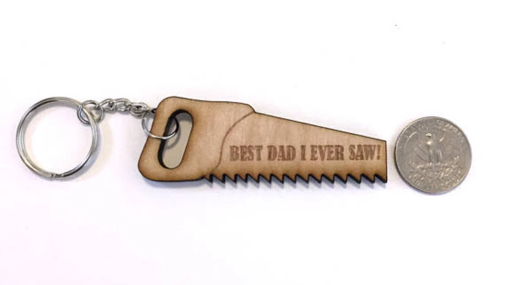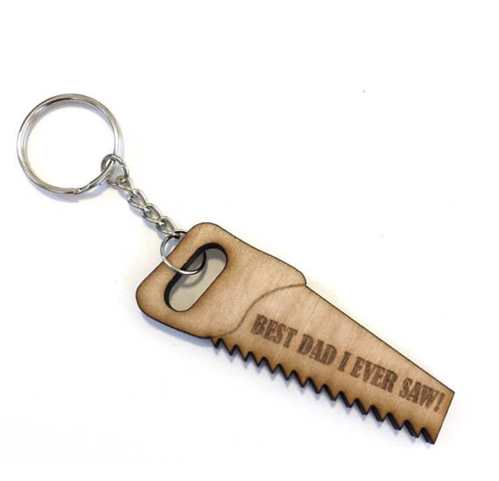 Fathers Day Keychain Best Dad I Ever Saw Laser Cut Maple Wood, Dad Gift, Day Keychain Hand Saw Gift Laser Cut Wood with clear coat with keyring About 3" long Make s a great Fathers Day Gift or anytime gift We also can customize it to your liking