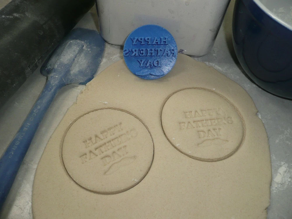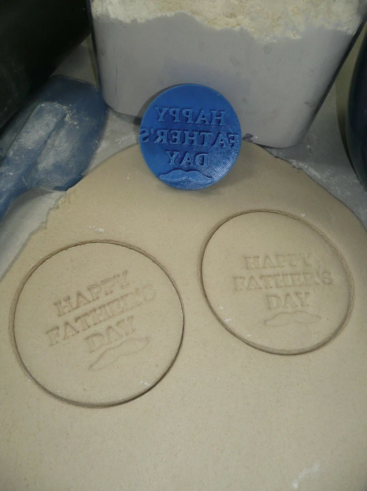 HAPPY FATHERS DAY WORDS MUSTACHE BLOCK FONT COOKIE STAMP EMBOSSER USA PR4196 Size 2 1/4" x 2 1/4" x 3/8" Product Code PR4196 BRAND NEW HAND WASH ONLY