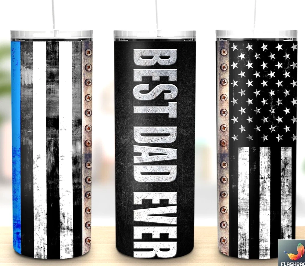 Fathers Day Police Best Dad Multicolor 20oz Insulated Tumbler Lid Straw New