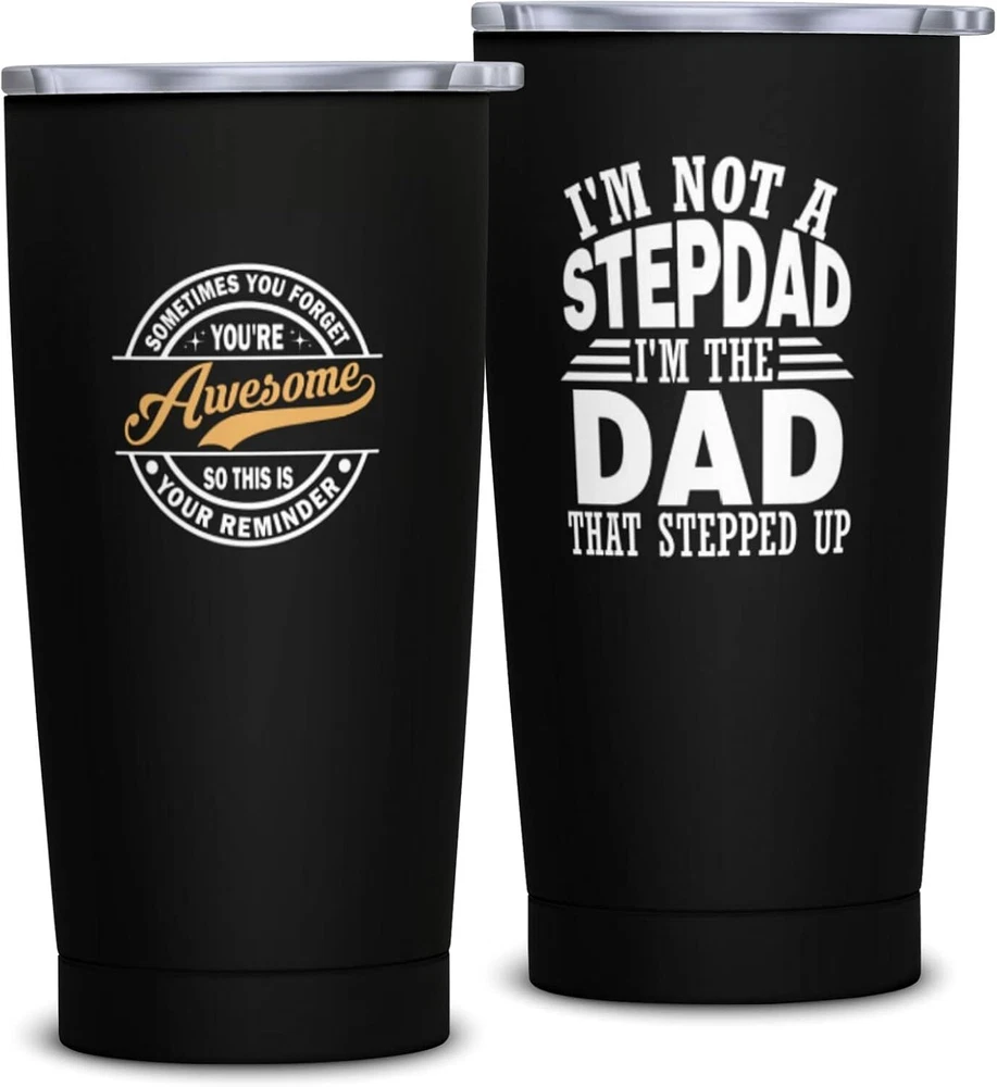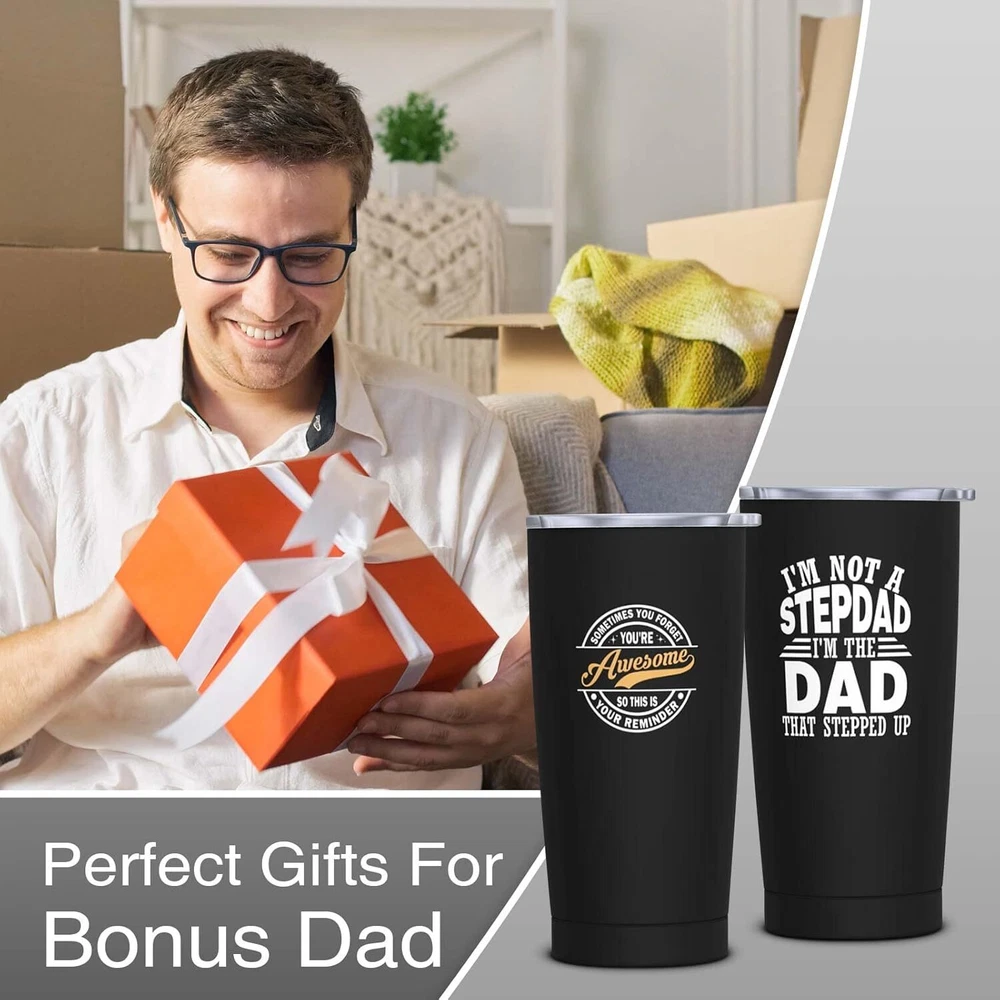 Fathers Day Step Dad Gifts, Bonus Birthday BLACK- to bonus dad Product Details Brand: NVFCC Color: BLACK- to bonus dad Special Feature: Vacuum Insulation Style: Modern Theme: Funny,Love MaterialCapacity: Stainless Steel20 Fluid Ounces GIFTS FOR BONUS DAD WITH HIS FAVORITE WORDS – Surprise your beloved stepdad with a heartwarming present that captures the essence of your love. Imagine the joy and delight on his face when he opens this gift and reads the heartfelt message printed on the tumbler. Whether you're celebrating a special occasion or want to express your love and gratitude, Show your stepdad how much you cherish him with our touching tumbler. Place your order today and give the gift of warmth and unwavering love. BEST STEPDAD GIFT IDEAS – Looking for the perfect sentimental gift for your bonus dad? Look no further than our tumbler with heartwarming quotes - the ideal present for Father's Day, birthdays, wedding anniversaries, Thanksgiving, Valentine's Day, Christmas, and other special occasions. Express your love for your bonus dad in the best way possible with this unique and thoughtful gift to enhance your bond. Let your bonus dad know how much he means to you with our touching tumbler. DOUBLE-WALL VACUUM INSULATION – We use double-wall insulation to help retain hot and cold liquid temperatures; this tumbler is the perfect way to keep your stepdad's favorite beverage at the ideal temperature. Whether sipping his morning coffee or enjoying a refreshing iced tea on a hot day, this tumbler will provide him with the perfect sip, just like a loving embrace. It's a heartfelt way to show your bonus dad that you're always there for him, no matter what. AN EVERYDAY COMPANION – This coffee tumbler is more than just a gift for special occasions. It's an everyday companion your bonus dad can take wherever he goes. It fits most car cup holders and is perfect for use at work, the gym, or any other daily activity. Every time he sips his favorite drink, he'll be reminded of your love and appreciation for him. HIGH-QUALITY MATERIALS – This tumbler is made of high-quality 18/8 food-grade stainless steel, which is odorless and environmentally friendly. The BPA-free clear lid that seals the cup tightly controls spills and allows you to see inside, featuring a slide-open design for easy use. It can be used directly for drinking or with a straw. Additionally, it comes with a 20cm stainless steel straw and a straw brush, which are reusable and eco-friendly.