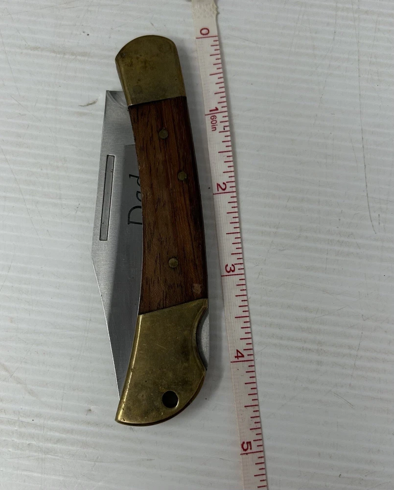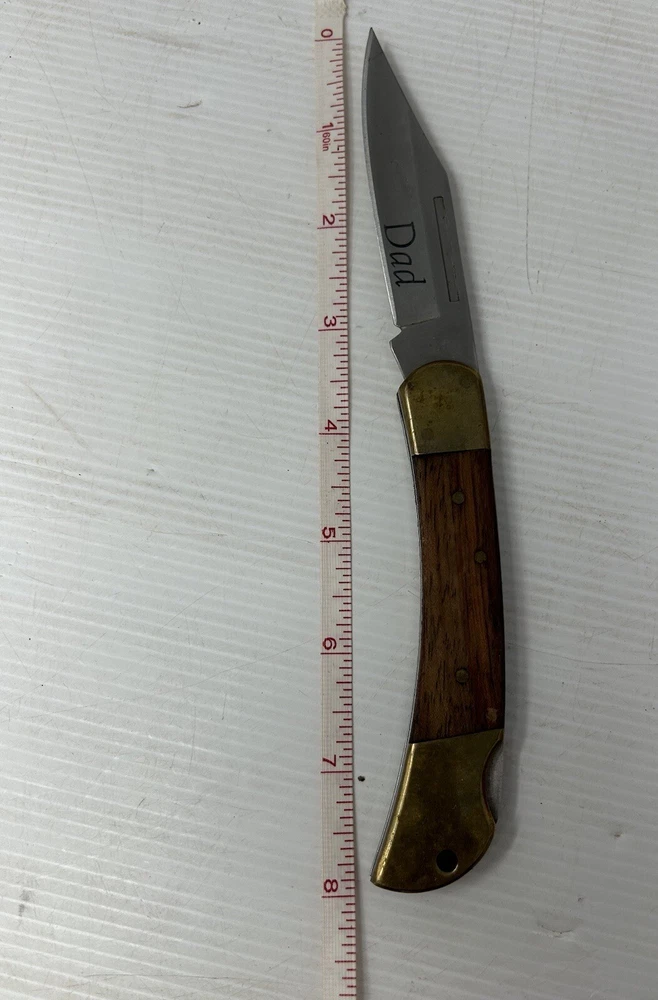 Get your hands on this beautiful Winchester pocket knife that features a 7.75" clip point blade made of stainless steel. The handle is made of brass and wood and has the word "Dad" engraved on it, making it a perfect gift for your father or any knife collector. This manual opening knife has a lockback mechanism and is suitable for both right and left-handed users. The brown color of the handle adds to its rustic charm. The Winchester Classic pocket knife is an original, factory-manufactured item that comes with a single blade and is an excellent addition to your collection. Fast safe ship This is a used item so there may be small imperfections and or blemishes. Please refer to the images provided as these are the most important part of the description. Photos are of the actual item being sold We appreciate you and thank you for checking out our listing. Be sure to check out all the other listings we have here at eBay! •STRIVING FOR 5 ⭐️⭐️⭐️⭐️⭐️ ••••I do my best to describe all my items correctly and completely, if you have any questions please do not hesitate to message me. ⭐️ Offers are always welcome and check out my other listings for a wide variety of items •••••Positive feedback is very important to me, I want you to be happy with your purchase! If you have a question or concern about your item, please contact me before leaving Feedback, and I'll do what I can to make it right. You’re satisfaction is my number one priority 🌟 Thank you for supporting our small business! This is a used item so there may be small imperfections and or blemishes. Please refer to the images provided as these are the most important part of the description. Photos are of the actual item being sold We appreciate you and thank you for checking out our listing. “International buyers - please note: Import duties, taxes, and charges aren't included in the item price or postage cost. These charges are the buyer's responsibility. "Please check with your country's customs office to determine what these additional costs will be, prior to bidding or buying. Best Tony and Felicia Bin 6