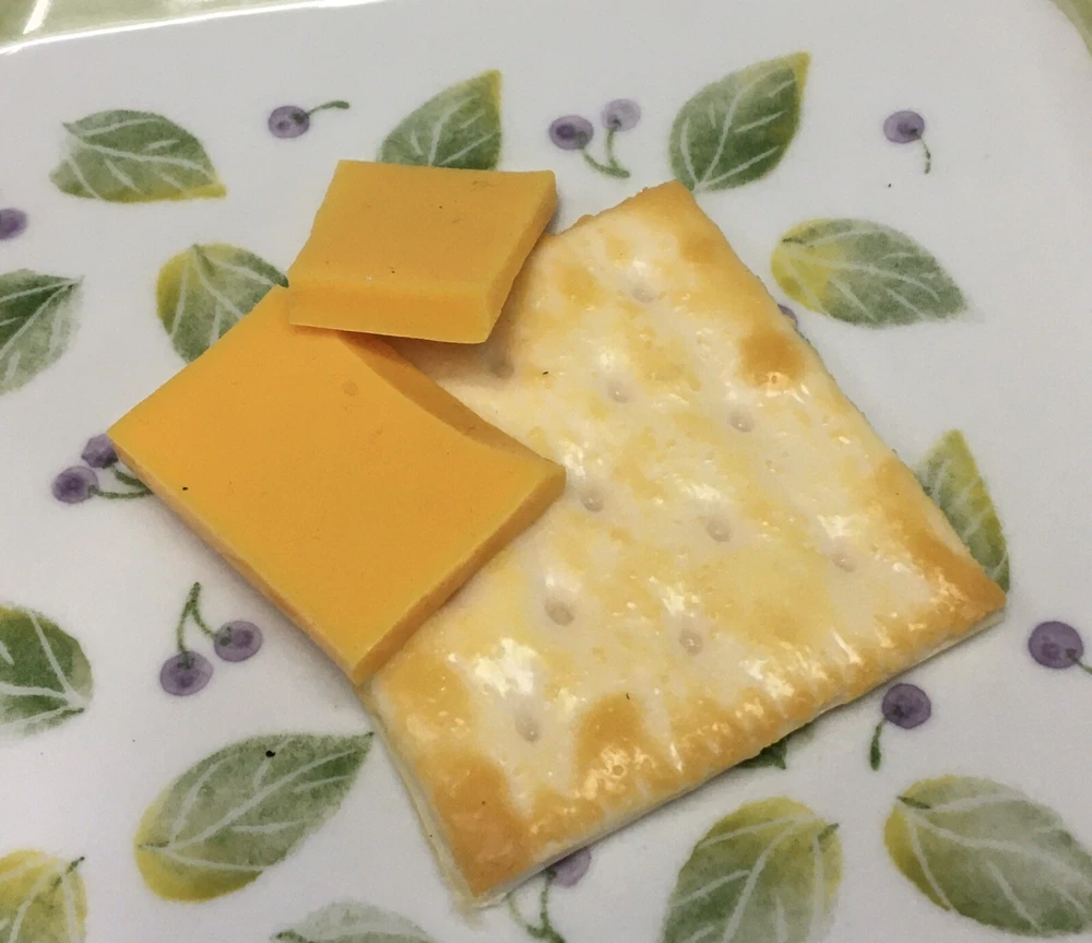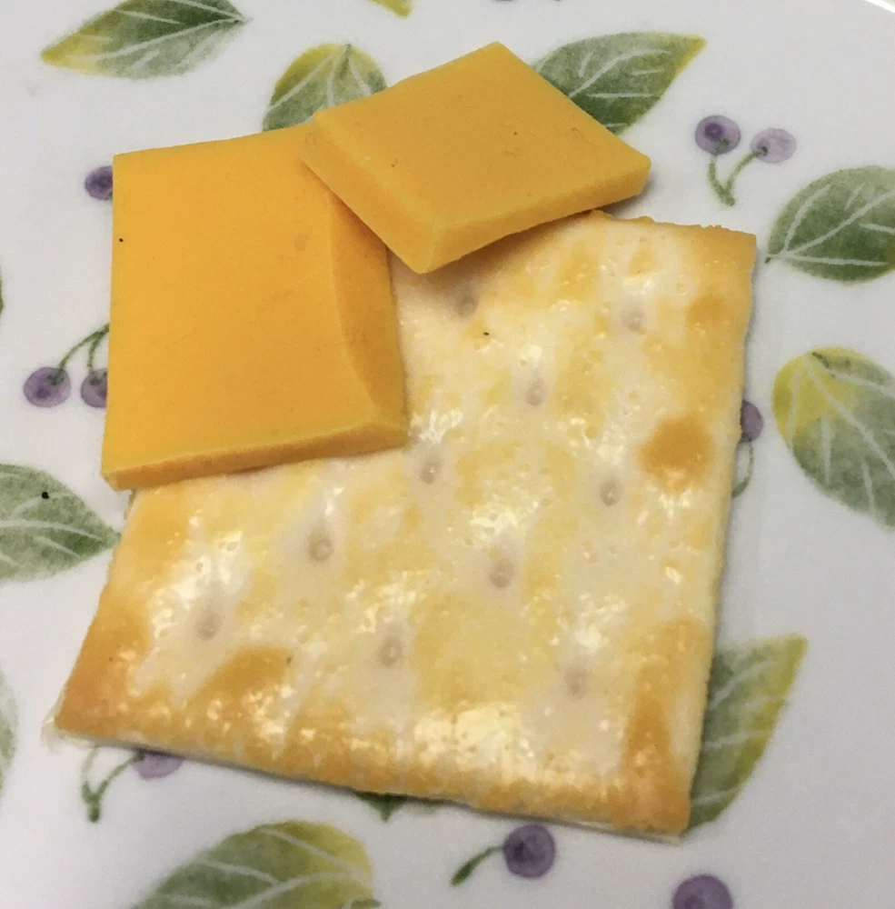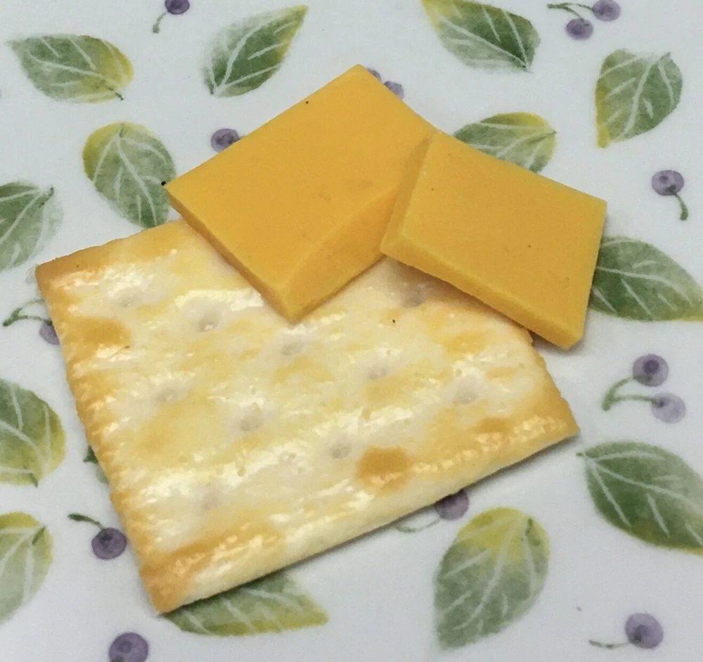 FAKE FOOD - 2 slices of Cheese & 1 Cracker Made of a rubbery silicone type material Please see ALL pics for SIZE and DETAILS Plate is for display only and is not included ATTENTION: Home Stagers, Realtors, Photographers, Decorators Uses: Add a touch of realism to your next open house or home staging, a model home, restaurant, photography shoot, winery, school play and even your own home. Did you know ??? • Staging makes your house look bigger, brighter, cleaner, warmer, more loving and, best of all, it makes home buyers want to buy it. • Homes that are professionally staged spend 50% less time on the market and sell for an average of 6.9% higher than homes not staged. EXCELLENT FOR HOME DECOR ~ DISPLAY ~ RESTAURANT ~ FOOD EXPO ~ PROPS ~ OPEN HOUSE