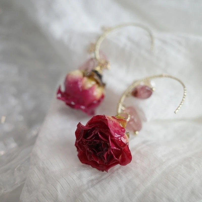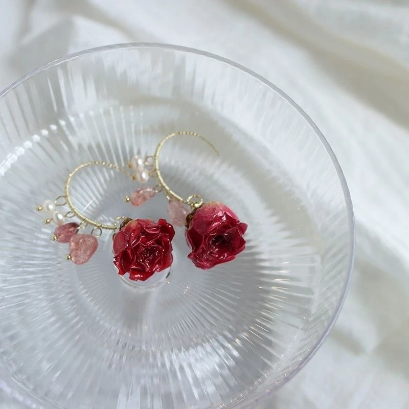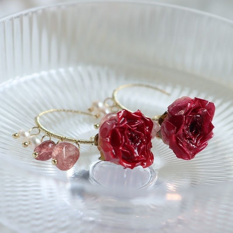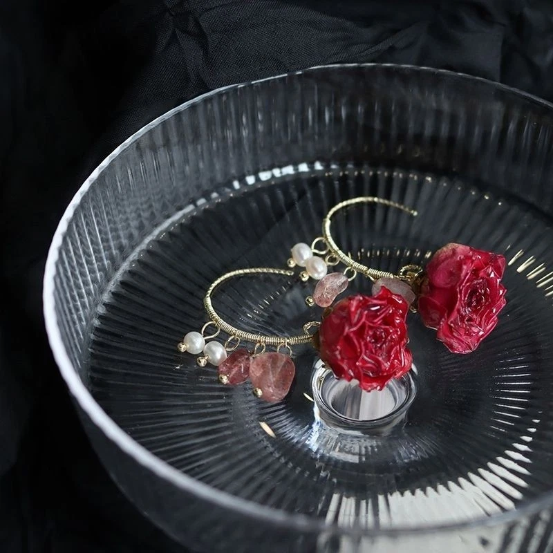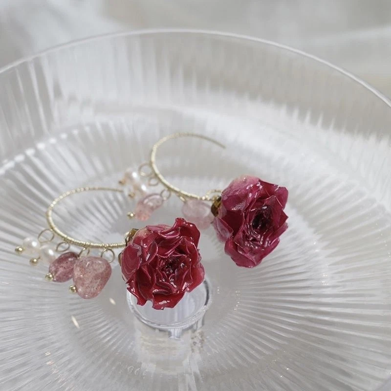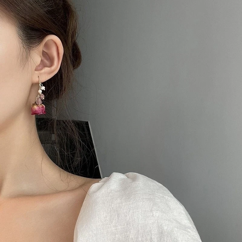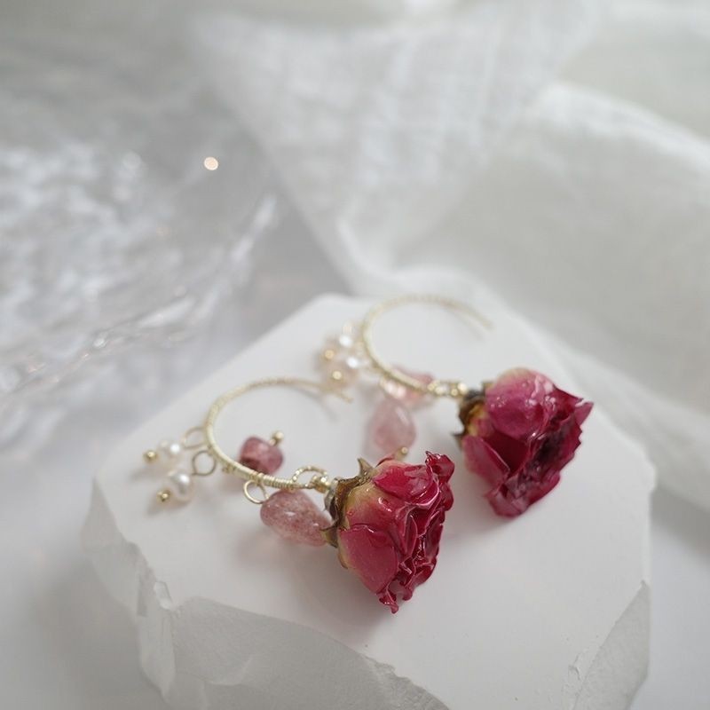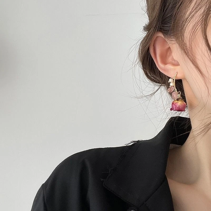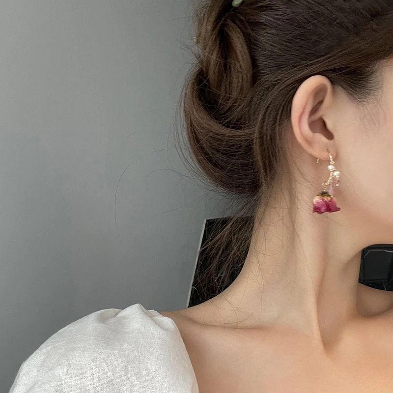 Faux Freshwater Pearl Rose Stud Earrings Vintage Floral Earrings For Women