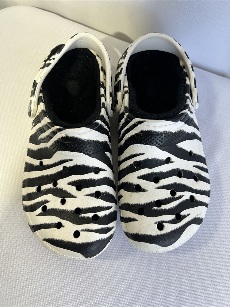Faux Fur Lined Crocs Zebra Print Clog Women’s Size 7 Men’s 5