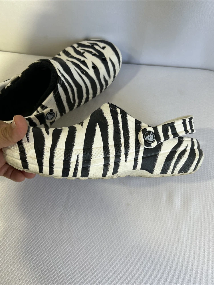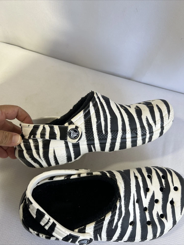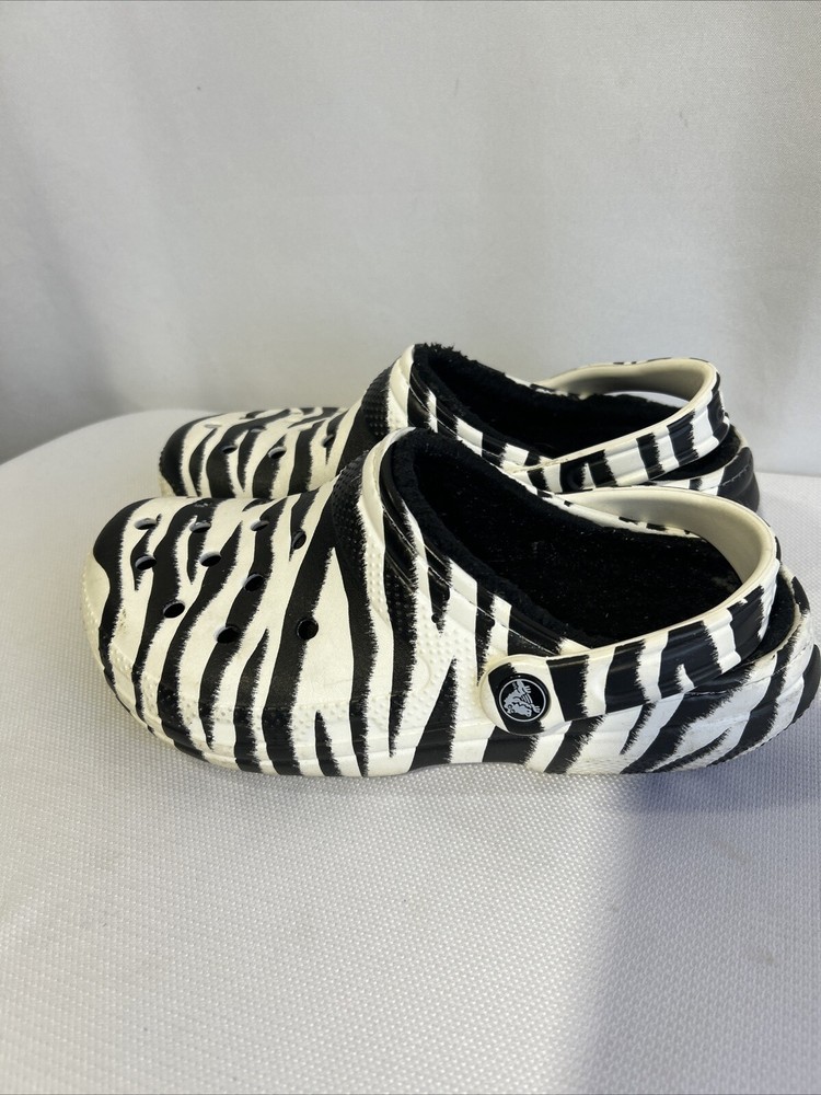 Crocs Faux Fur Lined Comfort Slip On Clog Zebra Print Womens Size 7 Men 5