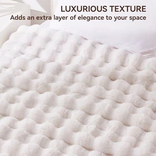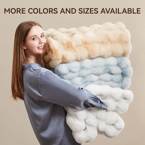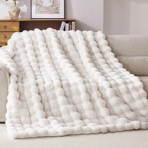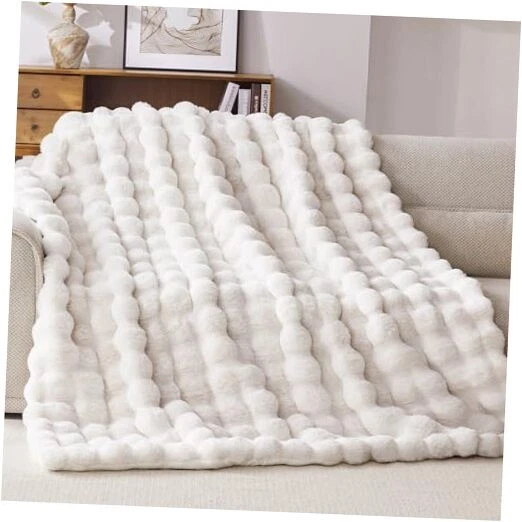 Faux Fur Throw Blanket, 1000GSM Fluffy Soft Bubble Blanket for Couch Bed, Cozy