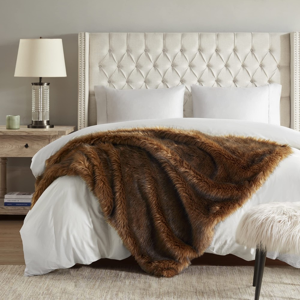 FAUX ANIMAL FUR: The blanket is designed to imitate the luxurious feel of animal hair, which is why we use a slightly firmer material. This is done to achieve the realistic appearance and texture of the blanket. We recommend this blanket for those who appreciate a unique and authentic experience. LUXURY & ELEGANT: Experience the epitome of luxury with our exquisite tipped fur blanket. The perfect blend of long hair faux fur on the top side and solid mink on the backside invites an unparalleled sense of elegance and sophistication into your home decor. Elevate your surroundings to a whole new level of opulence and refinement with this stunning piece. PERFECT GIFT CHOICE: Searching an idea gift for the you care about? Imaging her/his surprise and happiness when opening this gorgeous furry throw blanket. A perfect choice of gift for wedding, anniversary, birthday, or housewarming. MULTI-SCENE APPLICATION: Available in 50x60" and 60x80" options, perfect as couch throw, sofa throw and bed decorative throw - Large enough for adults to snuggle in. DEDICATED : Keep your faux fur throw blanket looking brand new by machine washing cold, gently and separately. Tumble dry low. You can return eligible item(s) within 30 days of receiving an order and service & life-time free .