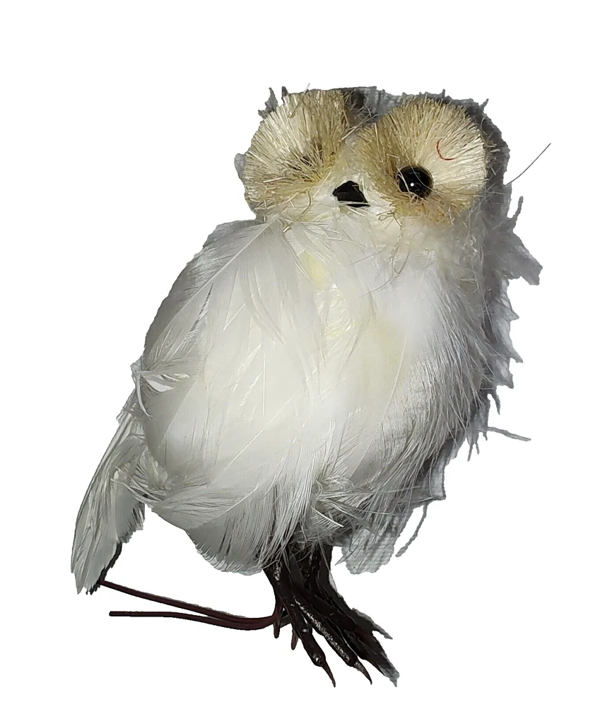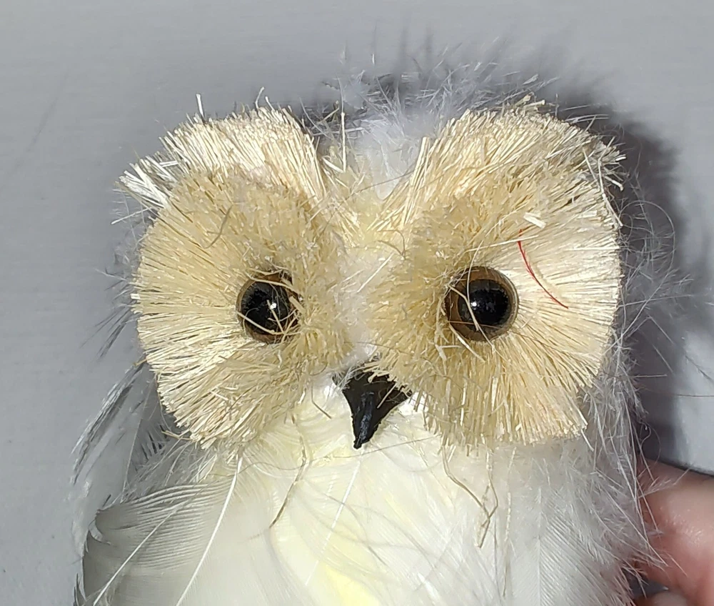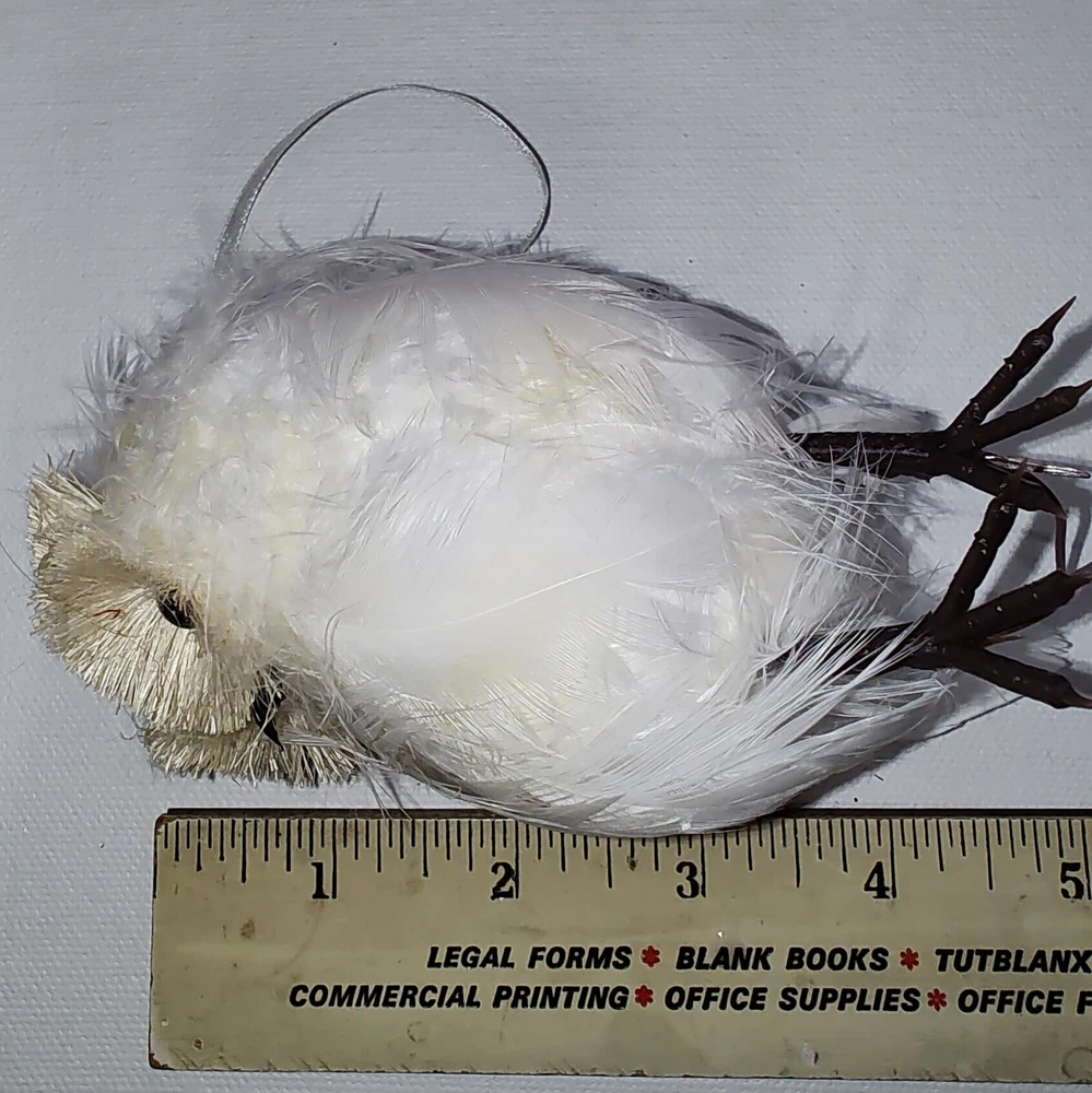 Faux Fur White Owl wolflend Ornament 4" Long Very Lightweight Cute Fuzzy