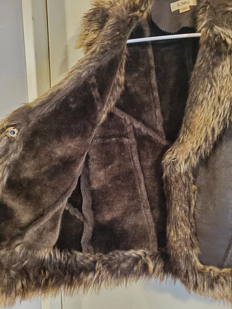 Faux Leather Fur Vest Women Size S Cato Faire Viking Nordic Norse Warrior