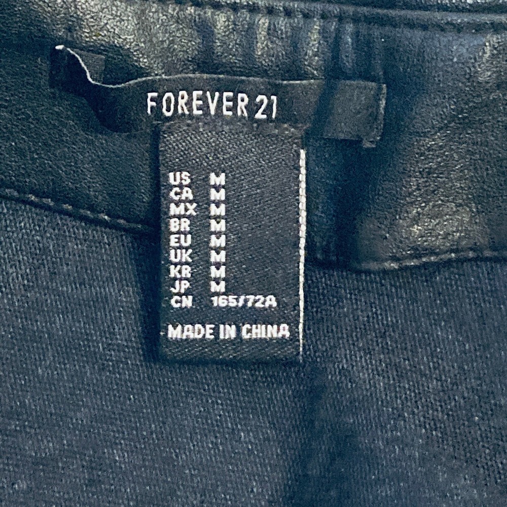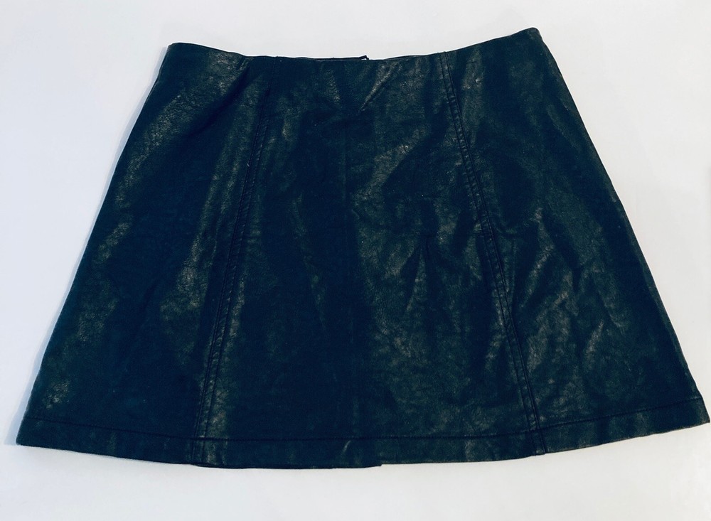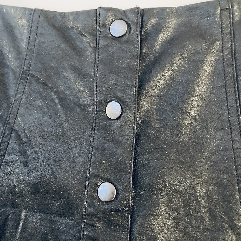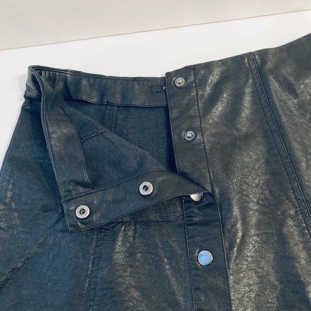 Forever 21 Cute Mini Skirt Women M 29W Black Faux Leather Silver Snaps Moto Biker Good condition. Fast shipper.