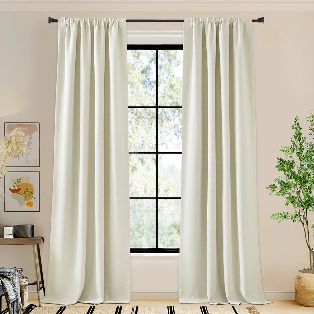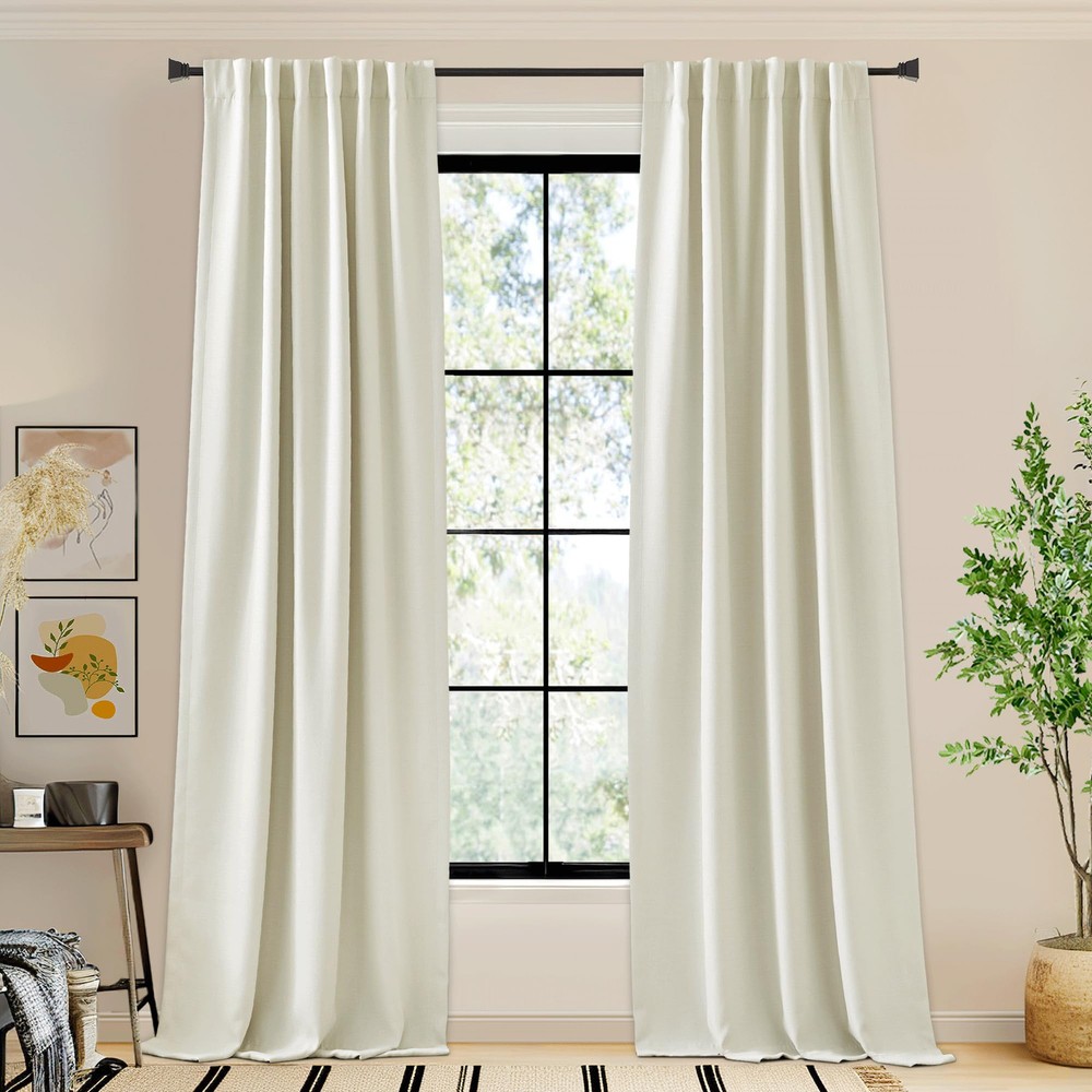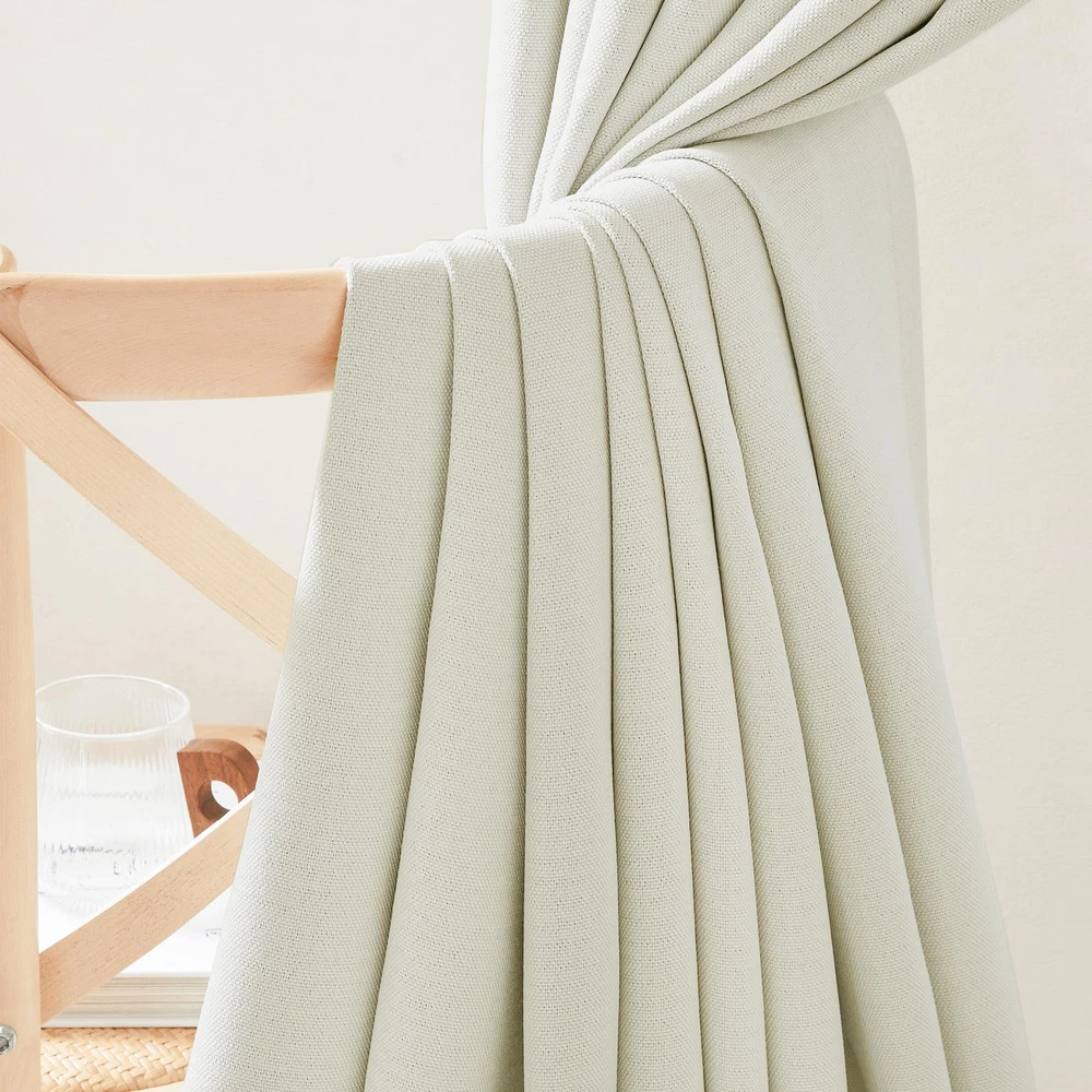 Ready Made: Package includes 1 panel of upmarket thick faux linen room darkening curtain, measuring 50" Wide, with 3 hanging options(2.2" diam) to suit most of the standard or decorative curtain rods. Light Blocking: The room darkening curtain with luxury faux linen textured will block most of the sunlight, heat, cold, and noise out with 100% privacy for your good sleep or rest even during the day. Hanging Options: You can hang your new drape using the back tab, or rod pocket, or use small hooks on the hook belt to let them gently hang downward, then you will get elegant pinch pleated curtains. Wide Compatibility: This functional linen curtain will decorate your windows and rooms with a new sense. Perfect for bedroom, living room, laundry, patio, nursery, and office to most of your home decor. Easy Care: upmarket faux linen texture is -free and has a good vertical sense for easy care. It's OK if you need tumble dry, quick ironing, steam clean, or machine washable in cold water.