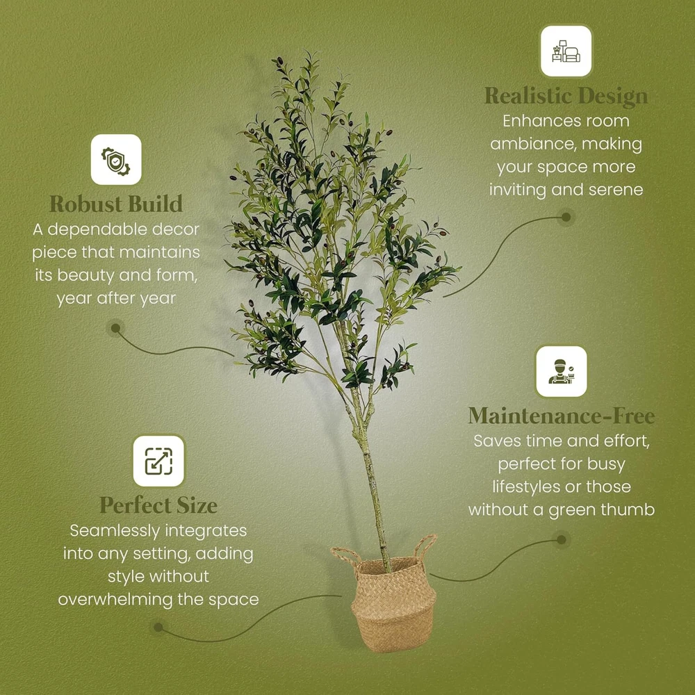 Faux Olive Tree 7 Feet - Free Wicker Planter Pot Included - Green