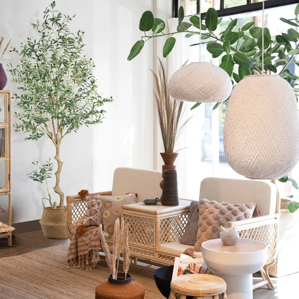 Olive Tree This artificial olive tree is 8ft tall and comes with a 8.66 X 8.86 inch white plastic flower pot and a pack of artificial moss. The olive tree and flowerpot are separable, so you can put the olive tree into any size flowerpot you like. Our artificial olive tree are made of wood trunk,it has rich leaves, and fruits.You can use it to decorate any scene, such as bedroom, living room, kitchen indoor, and is also perfect for bookstores and coffee shops etc Artificial Olive trees bring greenery to any space in the home.It does not require any sort of special care,you don't need to worry about pruning branches and watering, so you can stay green for a long time for you home The artificial olive tree has lush leaves and abundant fruits,it may need to be reshaped when removed from the box.Due to the adjustability of tree branches,you can adjust the branches according to your preferences stands behind all of its products with super customer service. If for any reason you are not satisfied in greenery garland, please don't hesitate to contact our customer service for help.