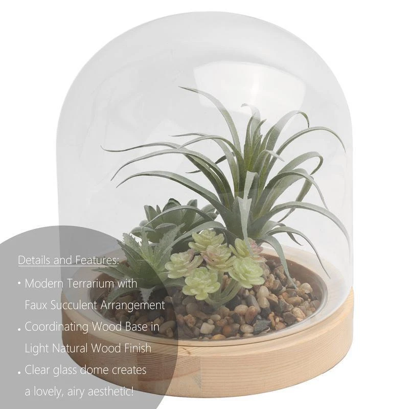 Luxurious Plush Shag Area Rug Soft High Pile Easy Care Modern Home Décor New 75.92 USD Free shipping Large 18 Gal Plastic Storage Bins Set of 8 Stackable Containers W/ Lids New 67.01 USD Free shipping Digital Air Fryer 4.75Qt Compact Low Fat 1400W One Touch Control 7 Presets New 61.22 USD Free shipping Catfish Spinning Fishing Rod Reel Combo Durable Ugly Tech Construction 2 Piece 78.41 USD Free shipping 15-Piece Stainless Steel Kitchen Knife Set W/ Block Shears & Sharpening Steel US 83.11 USD Free shipping 3-Piece Sherpa Comforter Set Full Queen Plush Warm Bedding Shams Easy Care New 64.86 USD Free shipping 5 Tier Steel Shelving Unit Adjustable Wire Racks Heavy Duty Storage 2500 lb New 106.8 USD Free shipping Avondale 16-Piece Kitchen Knife Set Wood Block Sharp Stainless Steel Blades New 58.63 USD Free shipping Contemporary Rectangular Wood Coffee Table Storage Organizer W/ Drawer Bins New 63.36 USD Free shipping 12 Piece Dinnerware Set Ceramic Plates Bowls Service 4 Microwave Dishwasher Safe 59.9 USD Free shipping 55 Qt High Performance Cooler Heavy Duty Ice Retention Portable Outdoor New 130.8 USD Free shipping Modern Contemporary 2-Door Buffet Cabinet W/ 2 Drawers Kitchen Storage New 131.51 USD Free shipping Looking for a chic plant-inspired decorative accent that is both visually impacting and no maintenance? Look no further! There is no need to have a green thumb with this fabulous Succulent Terrarium! This stunning design features a faux succulent arrangement which is surrounded by natural stones and encapsulated in an elegantly modern glass cloche! You will love the lifelike quality of this Succulent Tabletop Terrarium. The wood base features a beautiful natural wood finish. The overall dimensions measuring 6. 89 x 6. 89 x 9. 84” make this Succulent Terrarium a sizeable decorative accent which is sure to enhance any living room or entryway space! The simplicity of the arched cloche design paired with the genuine wood base, create the perfect nature-inspired decorative piece. Make the Succulent Terrarium yours today and enjoy how it amplifies your home interior’s decorative flair! Faux Succulent Cloche Terrarium Style Material: Glass, Wood, Plastic, Natural Stones Natural Wood Finish Base Overall Dimensions: 6. 89"x6. 89"x9. 84" Tabletop Décor Designed for Indoor Use Made in China You may also like 5-Piece Softside Luggage Set Rolling Duffel Tote Toiletry Kit Spinner Wheels New 94.38 USD Free shipping Tall Pantry Cabinet W/ 4 Doors Adjustable Shelves Large Drawer Storage Furniture 179.98 USD Free shipping 8-inch Wood & Poly Shrub Leaf Rake Eucalyptus Handle Lawn and Garden Cleaning 12.21 USD Free shipping Bread Storage Container Plastic Keeper W/ Lid Durable Freshness Solution New 8.43 USD Free shipping 18 Gallon Plastic Storage Bins W/ Snap-on Lids Stackable Tote Pack of 8 New 46.88 USD Free shipping Aluminum Cleaner & Restorer Boats Canoes Unpainted Metal Oxidation Removal New 29.0 USD Free shipping 30in Spinning Rod Reel Combo Fiberglass Durable Push Button Fishing Equipment US 15.47 USD Free shipping 6 Gallon Camping Water Storage Container 2 Pack Portable Heavy Duty Jug New 36.86 USD Free shipping 32 Piece Combination Wrench Set Metric SAE Durable Chrome Vanadium Storage Case 27.13 USD Free shipping Kids Outdoor Wooden Sandbox Cedar Wood W/ Foldable Benches Cover Liner New 168.99 USD Free shipping 6 Piece Stainless Steel Stock Pot Set Durable Heat Conducting Easy Storage New 50.15 USD Free shipping Arca Swiss Rifle Saddle Mount Tripod Clamp Quick Release Plate Shooting Rest New 49.39 USD Free shipping