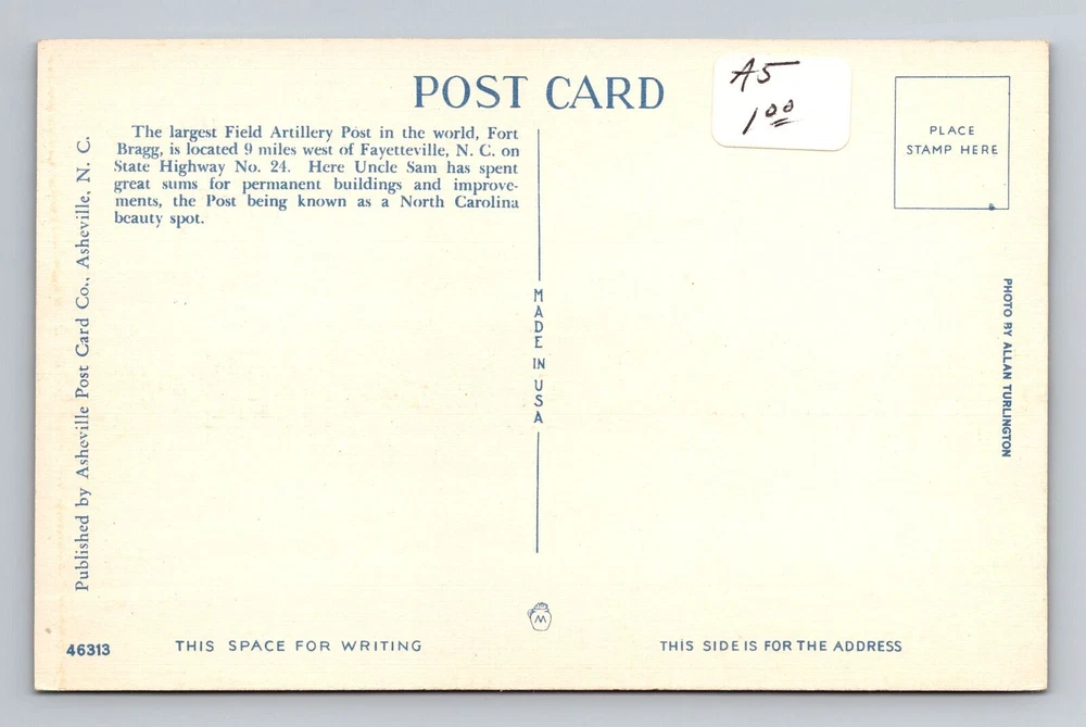 Original/Licensed Reprint: Original City: Fayetteville Era: Vintage Region: North Carolina Theme: Cities & Towns Unit of Sale: Single Unit Country: USA Country/Region of Manufacture: Unknown Type: Printed (Lithograph) Subject: Cities & Towns Postage Condition: See Image