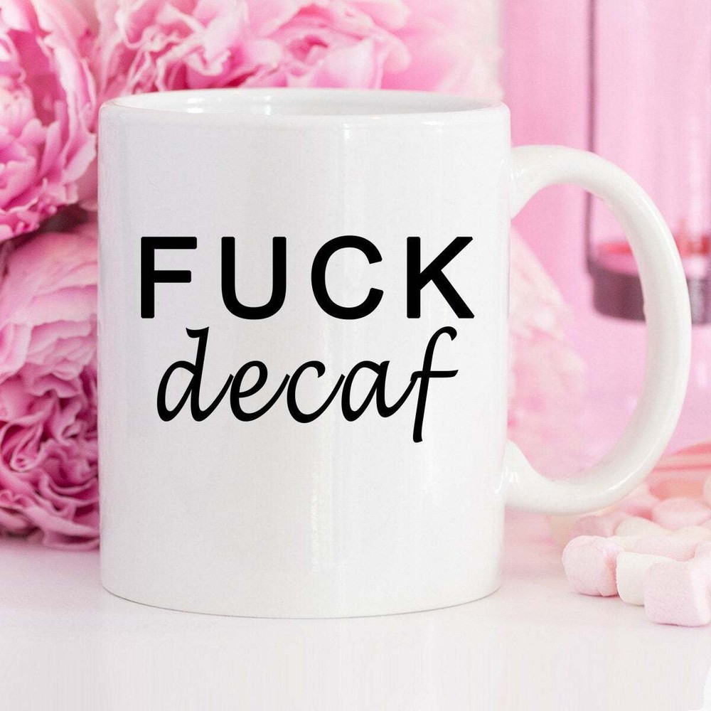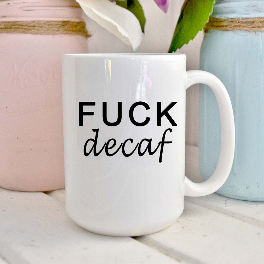 F*ck Decaf Funny Gift Cuss Word Naughty Gift Funny Coffee Mug Office Mug Boss Product Details.. This high quality 11oz. ceramic white mug has a premium hard coat that provides crisp and vibrant color reproduction sure to last for years. Perfect for all hot & cold beverages. The highest quality printing possible is used. It will never fade no matter how many times you wash it. Material: 100% Ceramic. Print both sides. Dishwasher and Microwave Safe. High Gloss + Premium White Finish. Printed in the U.S.A. Personalized & Custom. We support personalized and custom mug to add custom, when placing an order, you can add notes to the "order note" in shipping address section. Also you can contact us directly via message. Shipping Info. Ready to ship in 1 to 2 business days, All products are made-to-order and proudly printed in the United States. Shipped by USPS and DHL, You will receive your order in 5-7 days. Replace & Refund. All products are defective during shipping broken, chipped will be replaced free of charge. You are not satisfied with the product, we will refund 100% money to you. If any other issues arise, please do not hesitate to message, we would be more than happy to assist you.