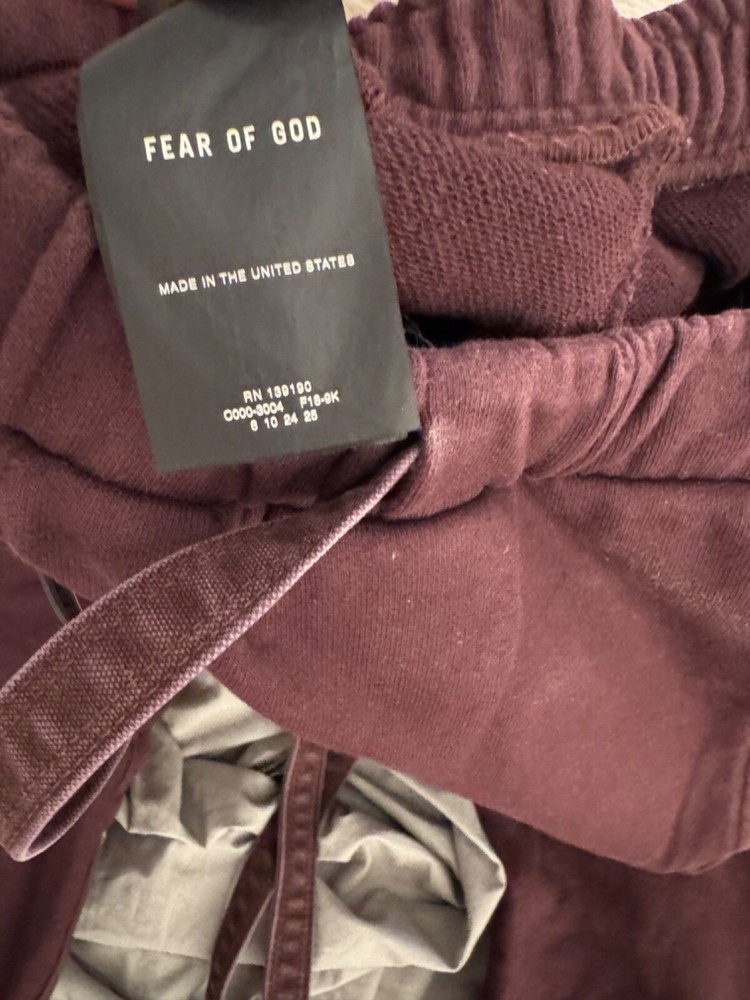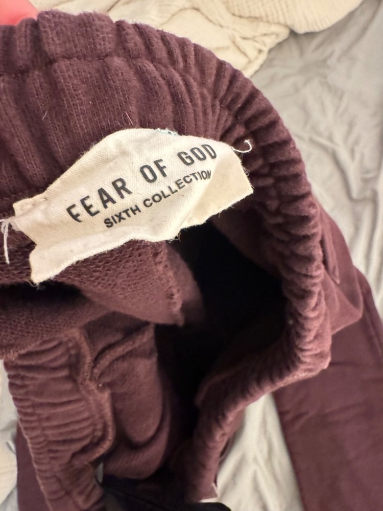 The Fear of God Sixth Collection Relaxed Cotton Sweatpants in Merlot are a rare find in size Medium. These athletic-style pants feature a reflective detail, making them stand out in both style and functionality. Made from comfortable cotton material, these sweatpants are designed with a relaxed fit for a modern and trendy look. Perfect for casual wear or athleisure outfits, these pants from the Fear of God brand are a stylish addition to any wardrobe.
