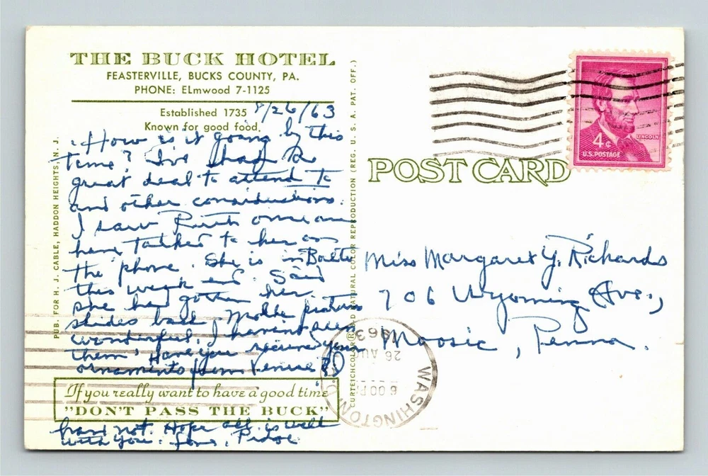 Feasterville PA-Pennsylvania, Buck Hotel, Buck's County, c1963 Vintage Postcard