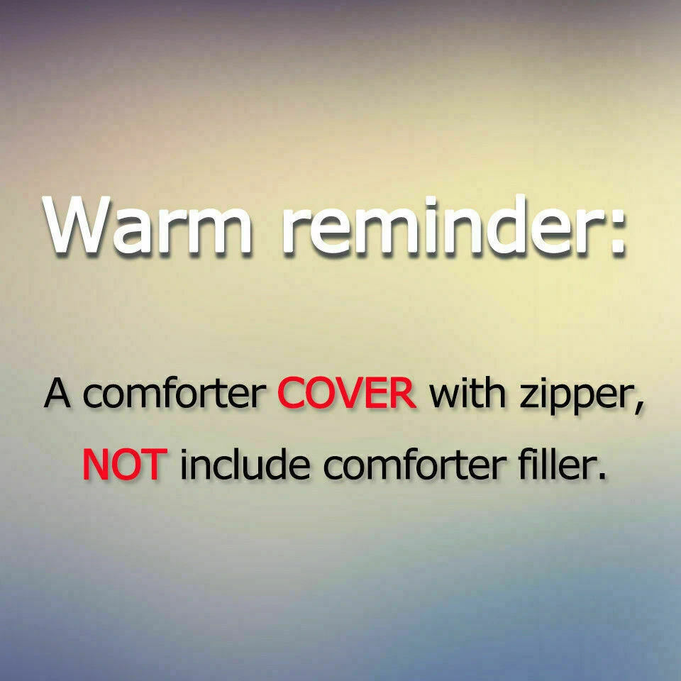 Feather Digital Printing #1 Quilt Duvet Cover Set Queen Double Comforter Cover Size - Single: 1 x Quilt Cover (145*210cm) 1 x Pillowcases (50*75cm) Set DOES NOT include any INSIDE FILLERS AND ACCESSORIES. Size - Double: 1 x Quilt Cover (180*210cm) 2 x Pillowcases (50*75cm) Set DOES NOT include any INSIDE FILLERS AND ACCESSORIES. Size - Queen: 1 x Quilt Cover (210*210cm) 2 x Pillowcases (50*75cm) Set DOES NOT include any INSIDE FILLERS AND ACCESSORIES. Size - King: 1 x Quilt Cover (220*240cm) 2 x Pillowcases (50*75cm) Set DOES NOT include any INSIDE FILLERS AND ACCESSORIES. Size - Super King: 1 x Quilt Cover (240*270cm) 2 x Pillowcases (50*75cm) Set DOES NOT include any INSIDE FILLERS AND ACCESSORIES. Features: Function: Decorate Type: Duvet Cover Set Material: Polyester Model: Bedding Cover Set Shape: Rectangular Department: Adults,Baby,Children,Teens Character: Bedding Cover Set Product Line: Bedding Line Room: Any Room, Basement, Bedroom, Children's Room, Conservatory Care Instructions: Do not bleach Do not tumble dry Line dry without delay Warm machine wash separately before use