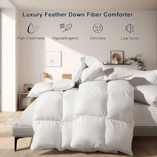 Feather Down Fiber Comforter Full Size Duvet Insert, Ultra Soft Luxury All