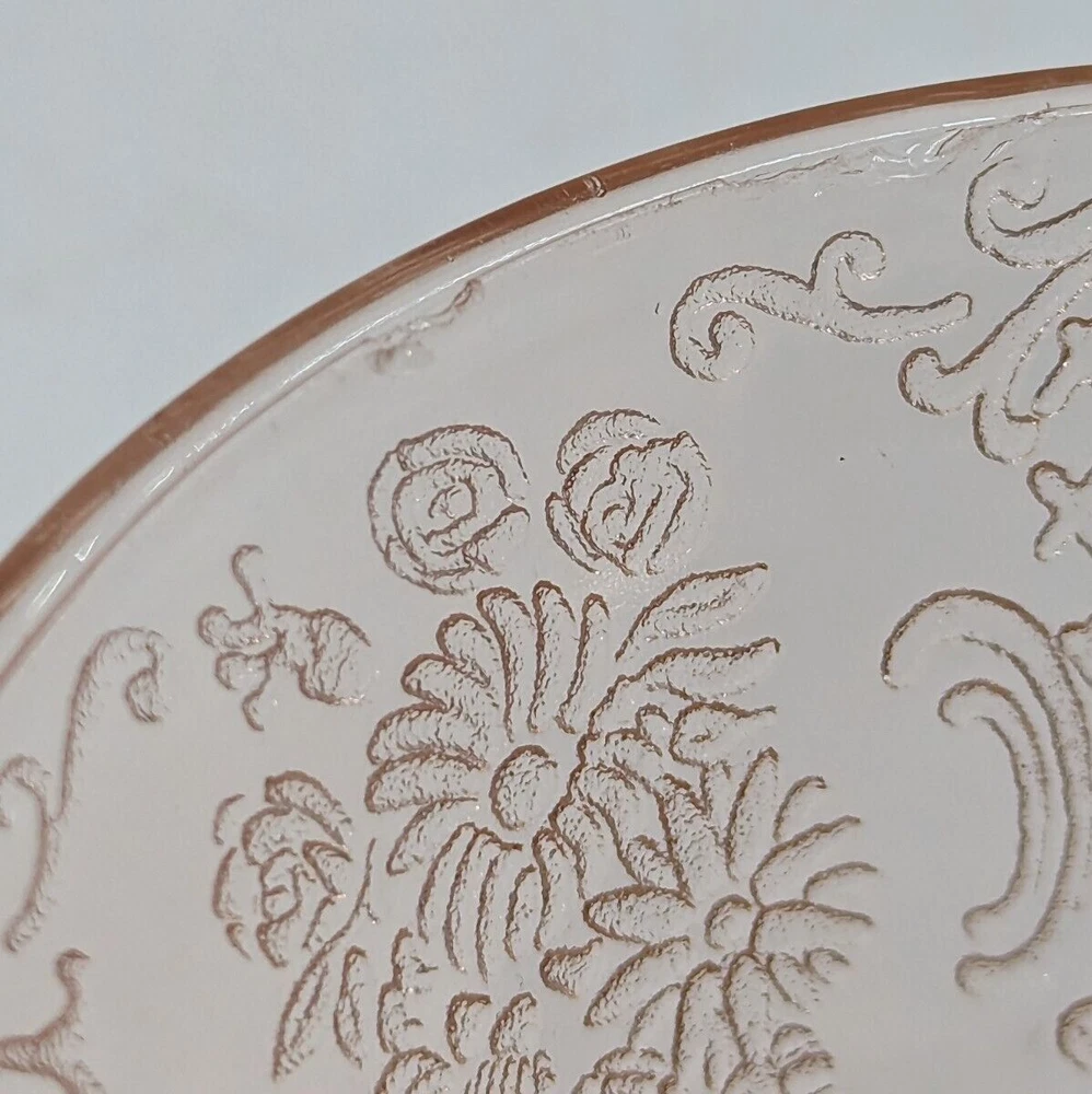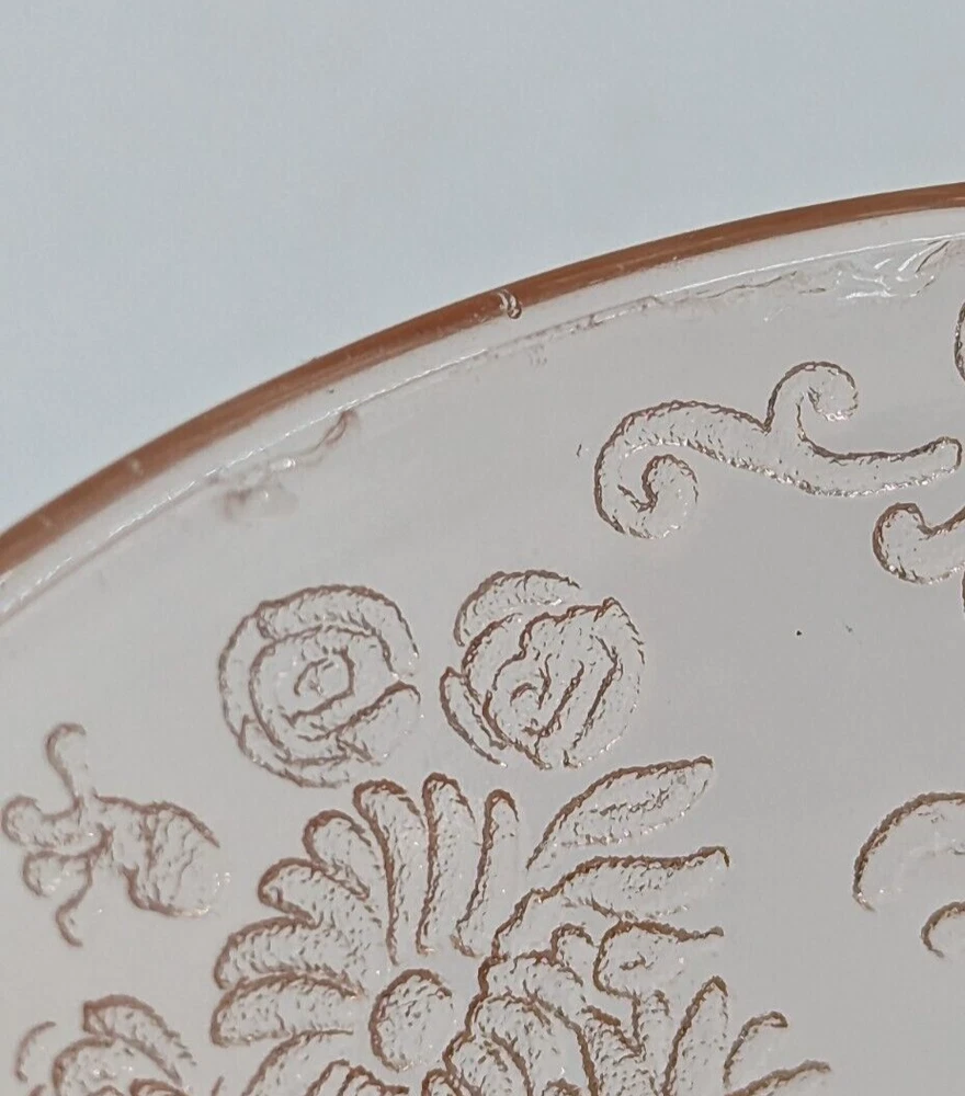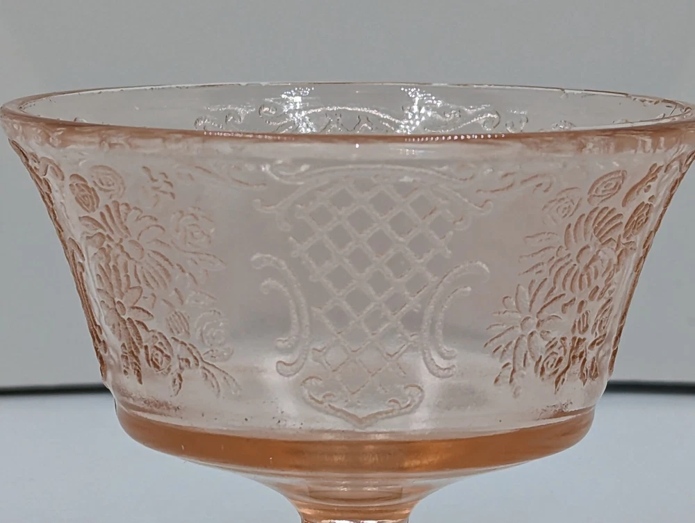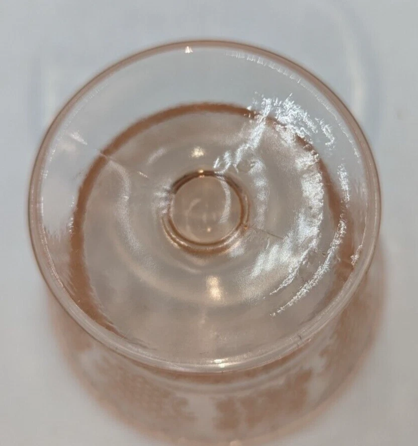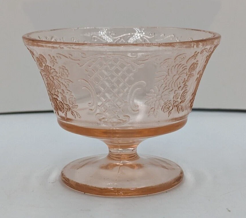 Federal Glass Normandie Pink Glass Bouquet & Lattice Footed Sherbet Dessert Cup. No cracks or breaks. There are some flea bites around the top - please see the last 3 close-up photos for reference. All of my items are carefully packed for shipping, no matter their value - $5 items are wrapped with the same care as a $200 item. My goal is to have your purchase arrive safely. I use recycled packaging when possible but mostly use new, high quality products so your item will arrive intact without damage. Large, heavy and fragile items are harder to use combined shipping with but just ask if you would like to purchase more than one item and I am more than happy to do so if feasible. If not, maybe we can work out a shipping discount. Thank you and hopefully you will visit my store again!