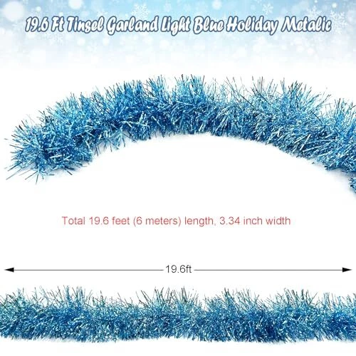 Return Policy Fast Delivery Trusted seller 19.68 Feet Christmas Tinsel Garland, Light Blue Holiday Metallic Garland Decorations, Party Ceiling Hanging Foil Sparkly Garland for All Season Indoor Outdoor Wedding Winter Wonderland Home Décor Product Description 【Elegant Winter Decor】: You will get one light blue tinsel garland with 20 feet long and 3.5 inches wide. Elevate your holiday decor with this elegant Christmas Blue Tinsel Garland, designed to infuse a touch of sophistication reminiscent of a serene winter sky. 【Shimmering Blue Hue】: The beautiful blue hue of this blue garland exudes a calming and enchanting ambiance, setting the perfect backdrop for your festive celebrations. 【Versatile Decoration】: Whether it's adorning your Christmas tree, draping across your fireplace, or enhancing your festive table, this Christmas tinsel garland adds a versatile and shimmering beauty to any space. 【Holiday Spirit】: Embrace the holiday spirit with this sparkly Christmas garland that captures the magic of Christmas, making your home feel warm, festive, and inviting for family and friends. 【Easy to Use and Reuse】: Tinsel garland is made of high quality PVC, light weight, bright colours, nice appearance. Christmas tinsel Garland easy-to-hang design and durable materials, this tinsel garland is convenient to use and can be stored and reused for future holiday seasons, making it a practical and long-lasting decoration choice. Shipping Returns Payment Shipping Shipping is FREE to all addresses other than APO/PO boxes in the lower 48 states. All our stock ships from US-based warehouses. Shipped via USPS or UPS (depending on location and package weight) Unless stated otherwise, all orders will ship within 24-72 hours of your payment being processed. Check our feedback to see the great reviews of FAST shipping we offer. Returns Seller does not accept returns Payment We currently accept payment via eBay managed payments only. Once payment is cleared, we will dispatch your shipment within 1-3 business days. Please refer to the "Shipping" tab for more information regarding shipping speed to your destination.