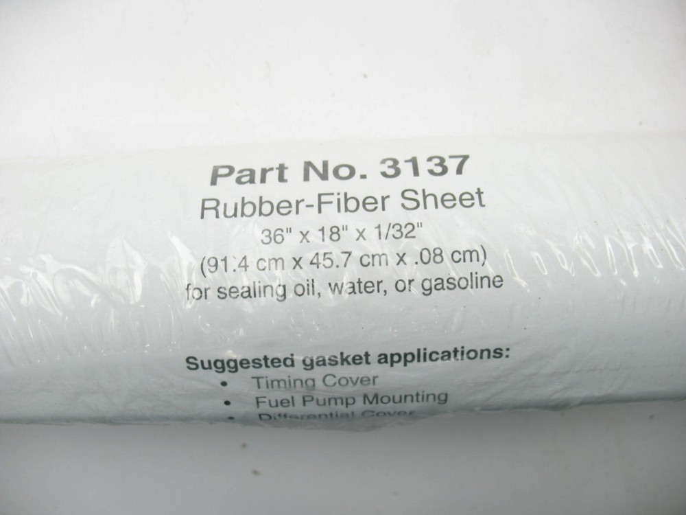 Fel-pro part number 3137. Rubber-Fiber Sheet 36" x 18" x 1/32" Free Shipping is for continental USA only. If you live in Alaska, Hawaii, or PR please contact us for a shipping quote before bidding. May contain shelf wear or imperfections due to the age of the product. Fitment: Applications are provided through literature and research and are correct to the best of our knowledge. Listed applications should be used as a guide and may fit additional vehicles. Please verify the part that you are ordering fits your application prior to purchase. Please contact us if you have any questions before purchasing. Shipping: Free Domestic Standard Shipping! Expedited shipping is available at an additional cost. Free shipping applies to continental United States only. Additional shipping and handling charges may apply for orders shipping to Hawaii, Alaska, Puerto Rico and all other US territories. International shipping is available. Contact us before purchasing and we will determine the best rate. Items are shipped the next business day after receiving full payment. Returns: We gladly accept returns 30 days after purchase. Items must be returned in the condition that they were sent for a full refund.