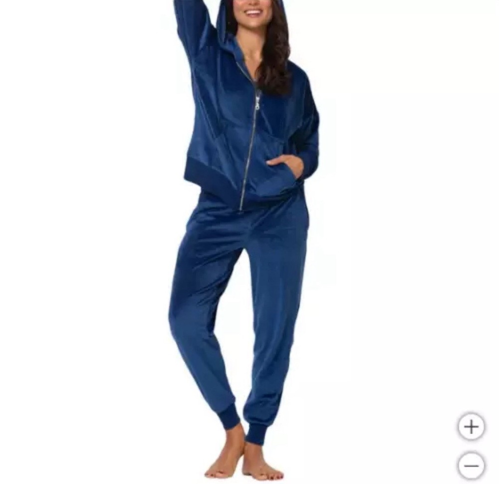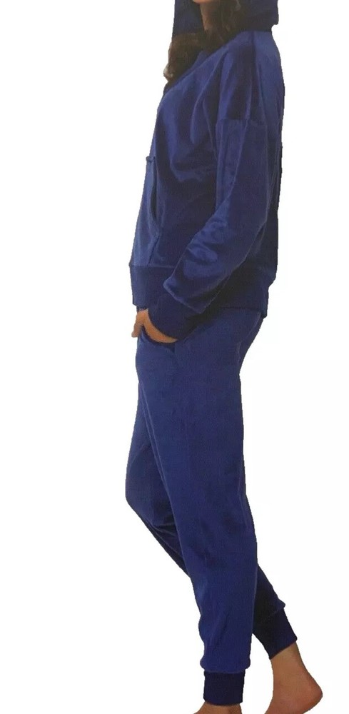 Elevate your activewear collection with this stylish and comfortable Felina women's hoodie jogger set in a beautiful shade of blue. The velour fabric type adds a touch of luxury to your workout wardrobe, while the relaxed fit ensures maximum comfort during any activity. The set includes a hoodie and joggers with a drawstring and zip closure, making them easy to wear and adjust. The long-sleeved hoodie features a hood and stretch material, perfect for keeping you warm during the colder months or cool during the summer. The joggers come in a regular size with a jogger hem, ideal for running errands or hitting the gym. Machine washable and easy to care for, this tracksuit is perfect for any season. A112