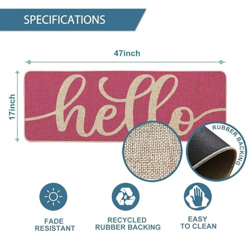 30 Days Return Policy Fast Delivery Trusted seller Pink Hello Valentine's Day Doormat, Spring Summer Home Decor Low-Profile Switch Rug Door Mat Floor Mat for Indoor Outdoor 17x47 Inch Product Description PERFECT FOR HOME DECOR : Welcome guests to your home with this unique, seasonal doormat. Perfect for any deck, patio, porch, veranda, and entryway and extend a warm welcome to all who enter your home DURABLE AND NON-SLIP : Backed with non-slip recycled rubber and topped with polyester felt that is low-profile to reduce chances of tripping, high-quality durable construction that is stain resistant LOW-PROFILE DESIGN : Measures 17" x 47" and features 0.25" slim, making it just the right size for every entryway. Our stylish doormats make a beautiful addition to your entryways, craft rooms, and office spaces EASY TO CLEAN : No scrubbing needed. Doormats are quick and easy to clean, just spray off with a hose or use a sponge and mild detergent to clean off dirt or yard debris. Material: 5% Polyester 95% Rubber. Imported, Country of origin: China UNIQUE CUTE DESIGN : Doormat tops were printed with unique and stylish patterns. A beautiful and creative way to decor your home when keeping clean Shipping Returns Payment Shipping Shipping is FREE to all addresses other than APO/PO boxes in the lower 48 states. All our stock ships from US-based warehouses. Shipped via USPS or UPS (depending on location and package weight) Unless stated otherwise, all orders will ship within 24-72 hours of your payment being processed. Check our feedback to see the great reviews of FAST shipping we offer. Returns As our valued customer, we will do our best to make sure the product you receive arrives to you on time and as expected. If you are not satisfied with your purchase, please contact us within 30 days of receiving your order to process a return. Payment We currently accept payment via eBay managed payments only. Once payment is cleared, we will dispatch your shipment within 1-3 business days. Please refer to the "Shipping" tab for more information regarding shipping speed to your destination.