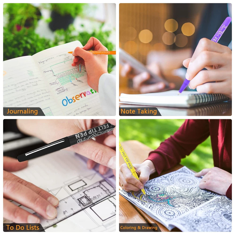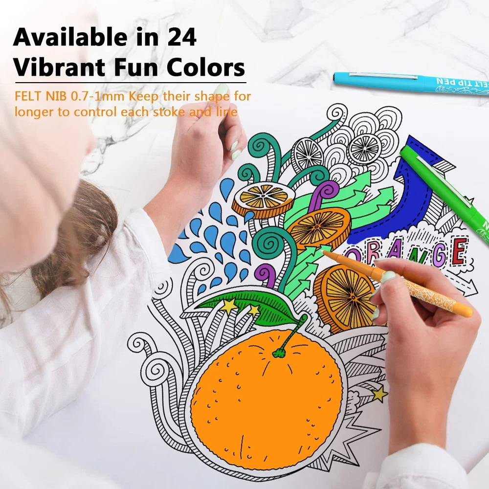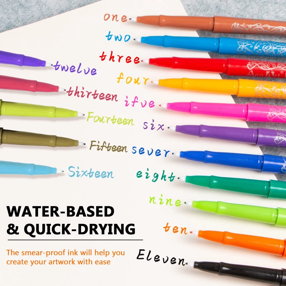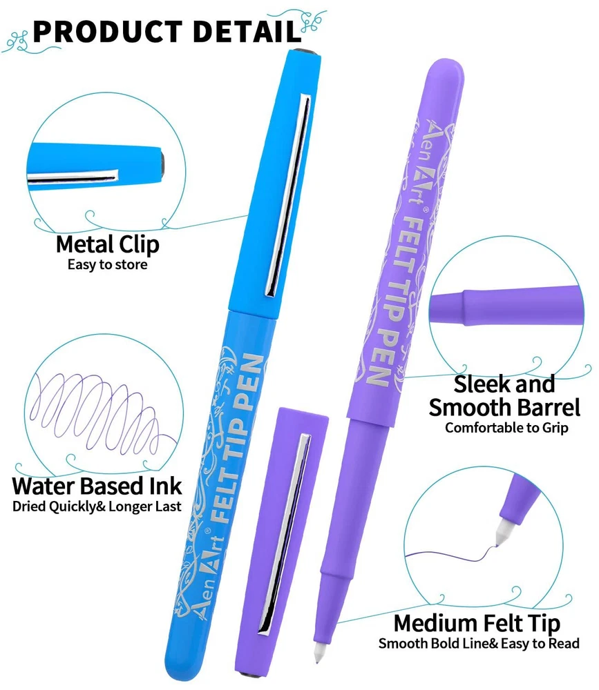 【 Variety of Colors】 Available in 24 pop colors make writing more colorful & cheery! Whether you’re taking notes, lettering or color co-ordinate planner, our colored pens are sure to make you obsessed. 【No-Bleed & Smooth Ink】 Water based & high pigmented ink dries instantly so smudging does not occur. No need to worry bleeding through page or ink smears. All you need is to enjoy the consistent flow writing experience 【No-Fray Tip】 Equip your art tools with Aen Art felt pens to make writing neat and clean. As we designed our marker pens to be suitable as calligraphy felt-tip pens, than delivery bold lines for detailing and filling 【Versatility of Use】 Felt tip pens are ideal for bullet journal, adult coloring books, note taking, planner, calendar, to do lists and more. We called it as teachers dream pen to get students attention and student’s go-to pen to keep assignments organized. 【Great Gift Idea】 Wanna gift your teacher or students with art supplier they will love? Look no further than those marker pens! If there is anything wrong with the marker pens, please feel free to contact us.