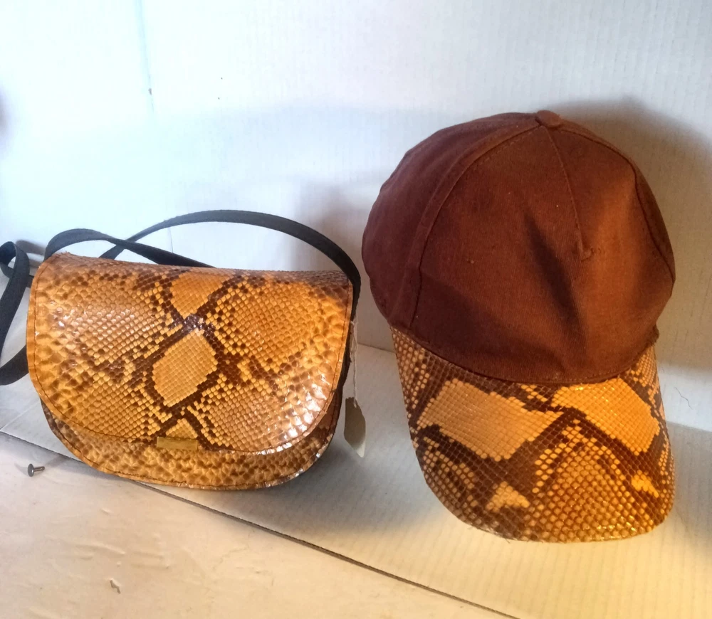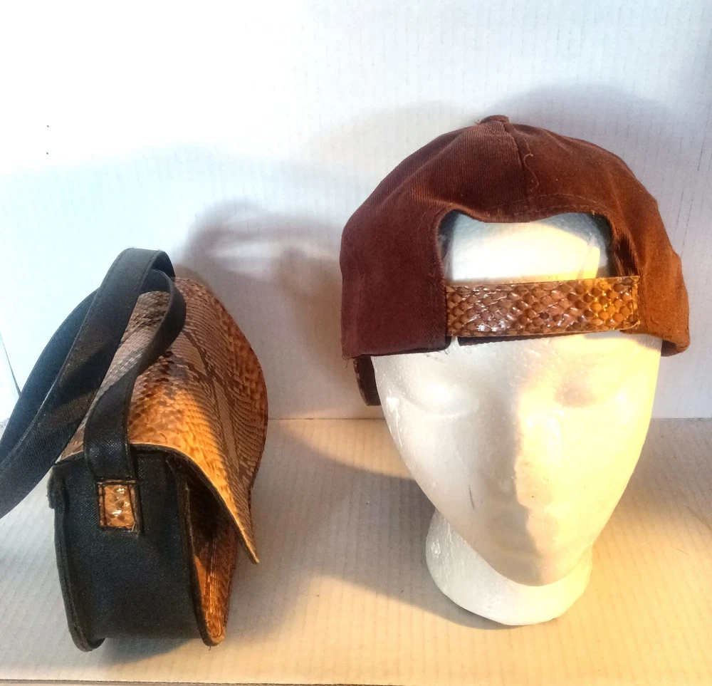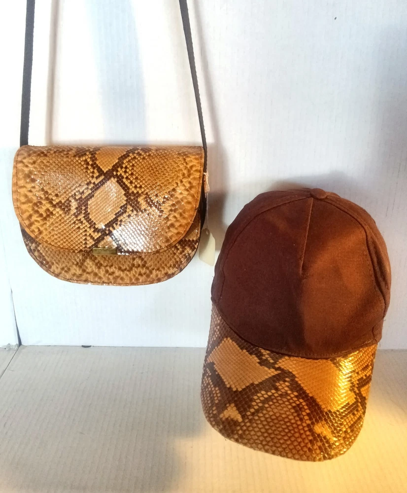 Add a touch of exotic style to your wardrobe with this stunning female python skin CAP and shoulder purse. The unique animal print pattern and tan exterior color make it a statement piece that is sure to turn heads. The bag features a magnetic closure and gold hardware accents that add a touch of elegance to the overall design. The bag is medium-sized with a width of 8 inches and a height of 7 inches. The handle and strap are made of black leather that complements the overall look of the bag. The lining material is brown fabric that adds a cozy feel to the bag. This purse is perfect for women who want to add a touch of luxury to their everyday style.