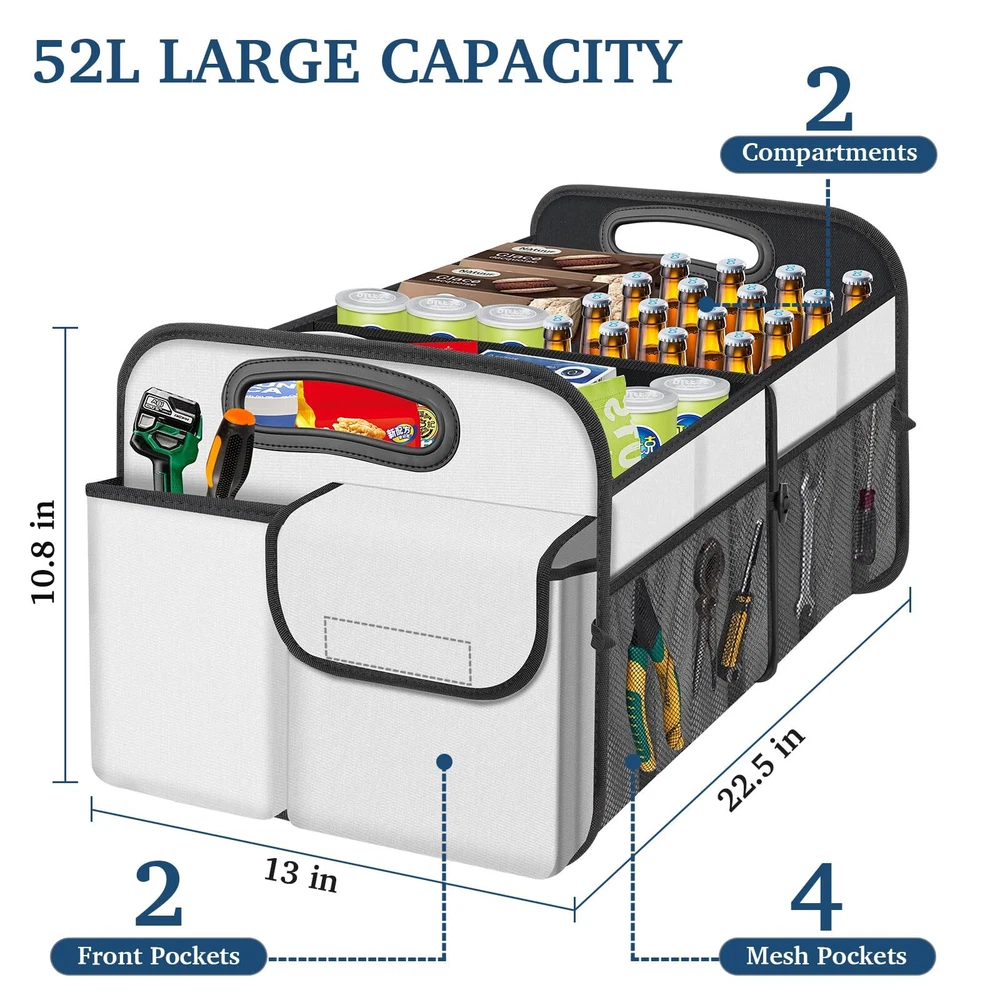 Femuar Car Trunk Organizer Car Storage Organizer with Large Capacity Waterpro... 【Collapsible Trunk Storage】:The trunk organizer for suv collapsible multi compartments with removable divider can fold the size that you need in your car interior and fold away when not in use. Foldable and portable. 【Waterproof Car Organization】:The car organizer trunk with havy duty 600D Oxford cloth waterproof material (durable, dirt-resistant and wear-resistant) is used to ensure the waterproof effect and easy to clean. 【Non-Slip Trunk Oganization】:Velcro non slip bottom to keep it stay in place and keep nothing sliding around or spills from your trunk organizer when you are driving. 【Trunk Organizer for Car】:This is the optimal solution for maintaining a clean car interior as car accessories. Suitable for all vehicle types, like trucks, SUVs, vans, jeeps, cars, etc., and it's fantastic for transporting and arranging groceries, toys, athletic equipment, tools, and more in your trunk. Eliminate trunk clutter situation with this car organizer. eep Your Trunk Tidy with the Foldable Trunk Organizer! This clever car organizers and storage folds up neatly when not in use, making storage a breeze. The wear-resistant and water-resistant oxford material keeps your belongings clean and protected. Non-slip velcro bottom secure the organizer in place and prevent it from sliding around. Stay organized on the go with handy features like: Multiple large compartments for bulky items Mesh pockets for smaller items Reinforced carry handles for easy portability Sturdy walls that hold their shape Compact folding design for slim storage Shipping We offer FREE shipping on all orders! We ship within Three business days of payment, usually sooner. We use a selection of shipping services such as UPS, FedEx, USPS etc. We only ship to the lower 48 states, no APO/FPO addresses or PO Boxes allowed. Local pickups and combined shipping options are not provided at this time. Return You can return a product for up to 30 days from the date you purchased it. Any product you return must be in the same condition you received it and in the original packaging. Please keep the receipt. Payment We accept payment by any of the following methods: PayPal Please pay as soon as possible after winning an auction, as that will allow us to post your item to you sooner! Feedback Customer satisfaction is very important to us. If you have any problem with your order, please contact us and we will do our best to make you satisfied. Contact Us If you have any queries, please contact us via ebay. We usually respond within 24 hours on weekdays. Please visit our eBay store to check out other items for sale! Thank you for shopping at our store.