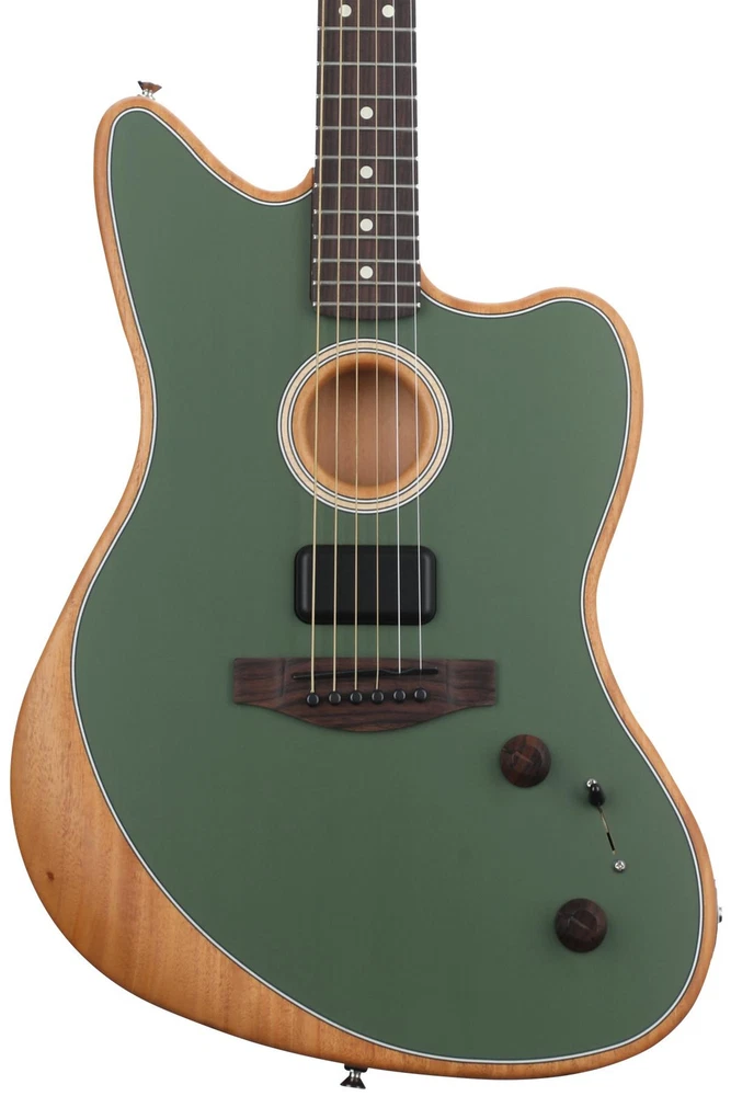 A Hybrid Jazzmaster for the Masses Sweetwater is an Authorized Fender Dealer Genuine New Item Sweetwater's 2-year warranty Fender 0972233176 + Fender 0239978005 + Fender 0990662080 + Fender 09803003 6-string Acoustic Electric Guitar with Spruce Top, Mahogany Back and Sides, Mahogany Neck, Rosewood Fingerboard - Antique Olive Poly-web Guitar Strap with White Embroidered Fender Logo - Black Celluloid 351 Guitar Pick - 12-pack Clip-on Headstock Tuner with LCD Display and Vibration Sensor - Black A Hybrid Jazzmaster for the Masses From the couch to the stage to the studio, Fender’s Acoustasonic Player Jazzmaster is a reasonably priced way to break into the hybrid world of the Acoustasonic series! While it may look just like everyone’s favorite surf and shoegaze 6-string, the Acoustasonic Player Jazzmaster’s solid spruce top and mahogany back/sides deliver an impressive unplugged voice that beautifully translates through an amp or PA via the under-saddle piezo pickup. Looking for something a little more aggressive? Simply switch to the Acoustasonic Shawbucker pickup to capture everything from high-gain riffage to soulful strumming. What’s more, a blend knob allows you to mix between these two ends of the tonal spectrum to get the best of both the acoustic and electric world! Finally, a modern deep “C”-profile neck and comfortably contoured slim offset body conjure up an effortless playability that your typical dreadnought can only dream of. Acoustasonic Shawbucker bridge pickup Fender Chief Engineer Tim Shaw holds claim to some of the most revered vintage pickup re-creations of our day. Among his more recognized Fender designs is the "Shawbucker" humbucking pickup: a love letter to Tim's more than 35 years of guitar industry service and a major propellent of Fender's HH and HSS electric guitars circa 2015 onward. For the Acoustasonic Player Jazzmaster's specially calibrated Acoustasonic Shawbucker pickup, Tim and Fender went back to the drawing board. "We realized we needed a higher-output pickup than normal because of the unique Acoustasonic body construction," says Tim. "The Acoustasonic Shawbucker has pole pieces that are factory preset from the back, and they’re compensated for bronze strings." This calibration permits pure electric tones you'd never believe could come from an "acoustic" instrument. "When you plug-in and experiment with the Blend control," Tim continues, "You’ll hear electric sounds that go from 'fat and clean' to 'right at home with a 4 x 12 cabinet.'" Plus, as with all Acoustasonic guitars, the Acoustasonic Jazzmaster's spanky, snarly electric tones are designed to sound great running into a traditional speaker cabinet or direct into a full-range PA. Iconic offset style Fender has done a great job of retaining the style and playability of its acclaimed Jazzmaster design for an instrument as advanced as the Acoustasonic Player Jazzmaster. From the familiar offset-waist body to its great-playing, rosewood-capped Modern Deep "C"-profile neck, everything about this guitar will make you feel right at home onstage or in the studio. Its action is a nice compromise between styles: it doesn't bottom out for strums, and it doesn't fret out for leads. Blend up your tone If you’re after a more traditional acoustic tone, the Fender Acoustasonic Player Jazzmaster’s under-saddle pickup captures every nuance of this guitar’s beautiful solid spruce top and resonant mahogany back and sides. It’s the perfect complement to the more traditional electric guitar tones of the Acoustasonic Shawbucker, providing a lush and organic tone that’s ideal for strumming out cowboy chords and tackling your latest fingerstyle masterpiece. However, if you’re feeling experimental, a blend knob allows you to borrow the best elements from this guitar's six fine-tuned electric and acoustic voices, accessed via the 3-way blade switch. Sweetwater guitarists especially love how blending in a bit of the Shawbucker can beef up your piezo’s low end! Fender Acoustasonic Player Jazzmaster Acoustic-electric Guitar Features: Hybrid acoustic-electric Jazzmaster body style is incredibly comfortable to play both sitting and standing Solid Sitka spruce top provides an authentic acoustic resonance and response Mahogany back and sides add a touch of warmth to your tone Mahogany neck in a modern deep “C”-profile is slightly chunky while still retaining electric-like playability Gorgeous rosewood fingerboard in a flat 12-inch radius is ideal for both plectrum-equipped leads and melodic fingerpicking Fender Acoustasonic Shawbucker Magnetic pickup provides everything from searing leads to clean and gentle rhythm tones Under-saddle piezo pickup captures the guitar’s rich acoustic tone for a more organic sound 3-way blade switch offers 6 different tonal voices to choose from (3 for the piezo, 3 for the Shawbucker) Blend knob to mix between your magnetic pickup and the under-saddle piezo Fender Accessories guitar and bass straps are made to give you great performance, durability, and comfort. Fender has been an icon in the music world for more than a half-century, and their commitment to quality extends to everything they make, from guitars to amps to accessories. Fender Accessories straps are made from the best materials available, and there's a strap that's sure to fit your style. When you want to play with confidence and comfort, it makes sense to go with a proven performer — choose a genuine Fender Accessories strap! This Fender Accessories Poly-web guitar strap is a very comfortable and affordable. It includes an embroidered white Fender logo. Fender Accessories Poly-web Strap Features: Color: Black Tough enough for any gig Comfortable 2"-wide strap Poly-web material Fender logo embroidered in white Adjustable Play with a proven performer — choose Fender Accessories! NOTE : This product is available in the United States only - no international sales. Get Great Tone from Your Strings with 