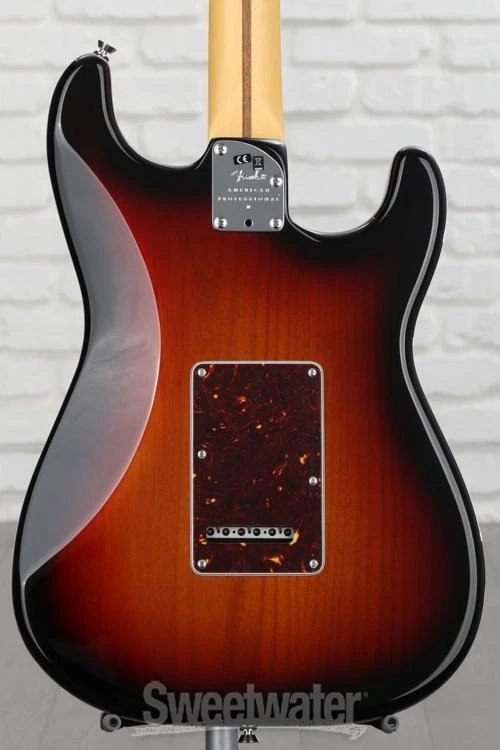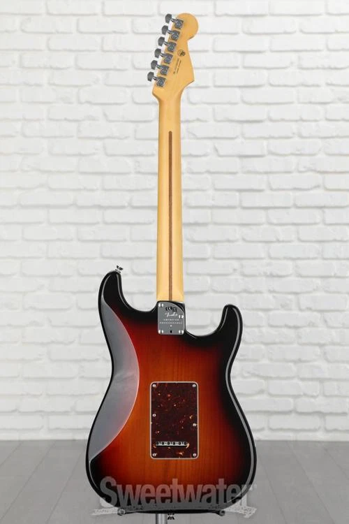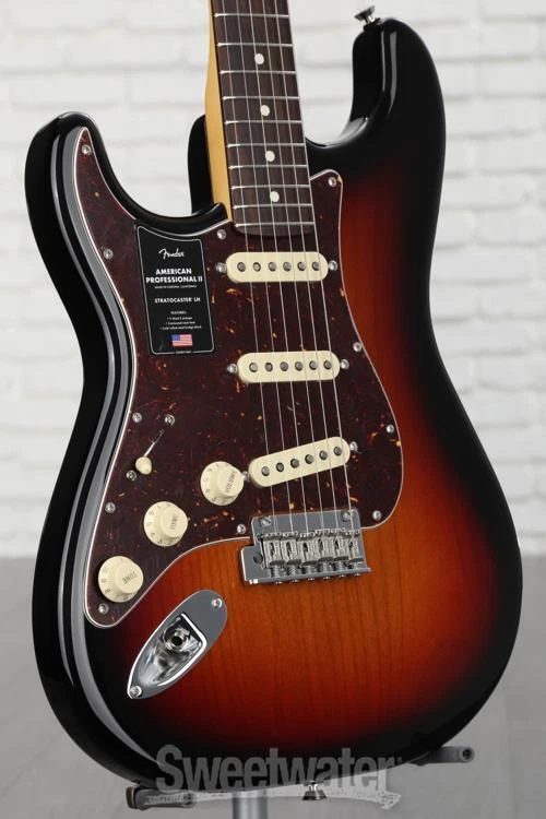 An Updated Take on the American Professional Stratocaster Fender's American Professional II Stratocaster offers multiple upgrades from its inaugural configuration. The lightweight, contoured body delivers a nicely balanced tonal foundation with a highly-resonant quality. This solidbody electric guitar's first major upgrade lies in the pickup selection. The American Professional II Stratocaster is loaded with a trio of V-Mod II single-coil pickups that pump out a vintage tone with modern refinements. An upgraded 2-point tremolo bridge and cold-rolled steel block combine to give you plenty of sustain and brightness. Further performance upgrades include a contoured heel joint, "Super-Natural" satin neck finish, and upgraded electronics. If you're looking for a guitar with a vintage voice and modern feel, the American Professional II Stratocaster is worth your consideration.Upgraded pickups promote clarity For the American Professional II Stratocasters, Fender's pickup guru, Tim Shaw created a new breed of V-Mod pickups. Fittingly dubbed the V-Mod Sweetwater is an Authorized Fender Dealer Genuine New Item Sweetwater's 2-year warranty and 55 point inspection Fender American Professional II Stratocaster Left-handed - 3 Color Sunburst with Solidbody Electric Guitar, Left-handed, with Alder Body, Maple Neck, Rosewood Fingerboard, and 3 Single-coil Pickups - 3 Color Sunburst An Updated Take on the American Professional Stratocaster Fender's American Professional II Stratocaster offers multiple upgrades from its inaugural configuration. The lightweight, contoured body delivers a nicely balanced tonal foundation with a highly-resonant quality. This solidbody electric guitar's first major upgrade lies in the pickup selection. The American Professional II Stratocaster is loaded with a trio of V-Mod II single-coil pickups that pump out a vintage tone with modern refinements. An upgraded 2-point tremolo bridge and cold-rolled steel block combine to give you plenty of sustain and brightness. Further performance upgrades include a contoured heel joint, "Super-Natural" satin neck finish, and upgraded electronics. If you're looking for a guitar with a vintage voice and modern feel, the American Professional II Stratocaster is worth your consideration. Upgraded pickups promote clarity For the American Professional II Stratocasters, Fender's pickup guru, Tim Shaw created a new breed of V-Mod pickups. Fittingly dubbed the V-Mod II pickups, each pickup delivers all the classic chime that defined the Strats of old with drastically enhanced clarity and articulation. The American Professional II Stratocaster is also loaded with a Push-Push tone knob that adds the neck pickup to the signal no matter what switch position you're using. Run it through your grittiest dirt pedals or your cleanest amp and the Fender American Professional II Stratocaster will be right at home. The new standard for professional instruments After the wild success of the original American Professional Stratocaster, Fender's team of designers dedicated themselves to improving on the design. The resulting instrument, the American Professional II Stratocaster, features a number of improvements and upgrades that push the classic design to new heights. V-Mod II single-coil pickups give you classic Strat sparkle with unbelievable clarity. The upgraded 2-point tremolo bridge has a cold-rolled steel block, which helps boost sustain and adds a touch of brightness. Factor in the all-new "Super-Natural" neck finish, and the Fender American Professional II Stratocaster sets the tone for what a professional level instrument should look, sound, and feel like. Custom Shop-influenced neck The Deep-C neck profile that you'll find on the Fender American Professional II Stratocaster solidbody electric guitar is a slight upgrade from the Fender American neck players have been in love with for years. By adding a touch more roundness to the back contour, the Deep-C carve fills your hand perfectly while never inhibiting your technique. For added playing comfort, the back of the neck is finished in Fender's "Super-Natural" satin finish that feels fast and inviting. Your fingers will immediately notice how much control they have on the fretboard's Narrow Tall frets. For good reason, this fret wire is the most requested size at the Fender Custom Shop. Fender American Professional II Stratocaster Solidbody Electric Guitar Features: Updated and upgraded Stratocaster for the performing musician V-Mod II single-coil pickups deliver vintage-style Strat sound with enhanced clarity Push-Push tone control adds the neck pickup to any position 2-point tremolo with cold-rolled steel tone block gives you expressive playing options and extra sustain Satin-finished maple neck feels fast and responsive Deep-C neck profile sits securely in your hand Contoured neck heel enhances comfort when playing in the upper register Narrow Tall frets play effortlessly Specification Detail Number of Strings 6 Left-/Right-handed Left-handed Body Type Solidbody Body Shape American Professional II Stratocaster Body Material Alder Color 3-Color Sunburst Body Finish Gloss Polyurethane Neck Material Maple Neck Shape Deep C Neck Joint Bolt-on Radius 9.5" Fingerboard Material Rosewood Fingerboard Inlay White Dots Number of Frets 22, Narrow Tall Scale Length 25.5" Nut Width 1.685" Nut Material Bone Bridge/Tailpiece 2-Point Synchronized Tremolo with Cold-rolled Steel Block Tuners Fender Standard Die-cast Neck Pickup Fender V-Mod II Single-coil Middle Pickup Fender V-Mod II Single-coil Bridge Pickup Fender V-Mod II Single-coil Controls 1 x master volume, 2 x tone (push/push add neck) Switching 5-way blade pickup switch Strings Fender, USA 250L .009-.042 Case/Gig Bag Hardshell Case RETURN INFORMATION We want you to be completely happy with your purchase from Sweetwater. If you are not satisfied with your product, you may return it for a refund of the purchase price within 30 days. If your purchase was eligi