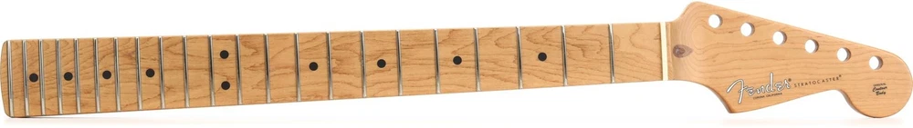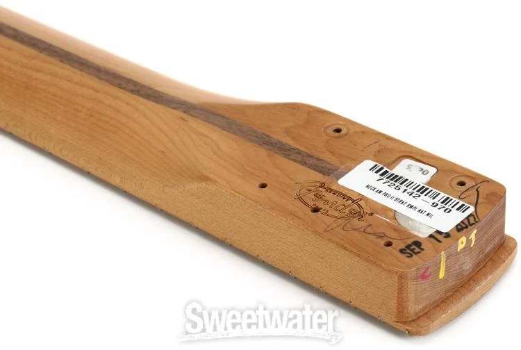 Roasted Maple for Increased Stability This American Professional II Roasted Maple Stratocaster neck is your ideal neck replacement solution for improved playability and a sharp look. Built from roasted maple with a matching roasted maple fingerboard, the deep "C"-shaped neck profile brings classic Strat comfort and agility that you can trust because it was built in the same facility as Fender’s U.S.-made instruments. Sweetwater guitarists find that this model’s unique rolled fingerboard edges provide extra back-of-neck contact space, which means more fretboard access and less strain. Note: Every neck and guitar are different, and a final setup, including filing the nut slots and a final fret leveling, may be required after installation on your guitar. Call your Sweetwater Sales Engineer if you have any questions about upgrading or replacing the neck on your Fender guitar or bass.Roasted maple neck and fingerboard What’s so special about roasted maple? In comparison to Sweetwater is an Authorized Fender Dealer Genuine New Item Sweetwater's 2-year warranty Fender American Professional II Stratocaster - Roasted Maple Roasted Maple Stratocaster Neck with Roasted Maple Fingerboard, Deep "C" Neck, 9.5" Radius, and 22 Narrow-tall Frets Roasted Maple for Increased Stability This American Professional II Roasted Maple Stratocaster neck is your ideal neck replacement solution for improved playability and a sharp look. Built from roasted maple with a matching roasted maple fingerboard, the deep "C"-shaped neck profile brings classic Strat comfort and agility that you can trust because it was built in the same facility as Fender’s U.S.-made instruments. Sweetwater guitarists find that this model’s unique rolled fingerboard edges provide extra back-of-neck contact space, which means more fretboard access and less strain. Note: Every neck and guitar are different, and a final setup, including filing the nut slots and a final fret leveling, may be required after installation on your guitar. Call your Sweetwater Sales Engineer if you have any questions about upgrading or replacing the neck on your Fender guitar or bass. Roasted maple neck and fingerboard What’s so special about roasted maple? In comparison to a standard maple neck, a roasted maple neck’s lower moisture content is said to increase structural stability. This results in greater resistance to changes in environment, ensuring that your neck relief and overall setup remain solid for much longer than with a standard maple neck. Finally, roasted maple’s dark amber hue imparts an elegant edge to any instrument’s aesthetics. Built for performance The American Professional II Stratocaster Roasted Maple Neck’s deep “C” shape is a benchmark for high-performance playability, providing the sleek, fast performance of a standard “C” profile, with just a touch of added heft. Moreover, the flat 9.5-inch radius and narrow tall frets are an excellent choice for players who favor modern playability and effortless bending up and down the fingerboard. Fender American Profession II Stratocaster Roasted Maple Neck Features: Deep "C"-shaped neck profile for classic Strat comfort and speed Smooth rolled fingerboard edges supply more contact space and playability Roasted maple construction provides excellent structural stability 25.5-inch scale length Roasted Mmaple fingerboard with 22 narrow-tall frets and a 9.5-inch fingerboard radius Fender's Super-Natural satin finish ensures maximum comfort Crafted with premium materials, including a bone nut for enhanced tone, resonance, and sustain 4 pre-drilled pilot holes — a 5th pilot hole must be drilled for installation on standard models Built in the same facility as Fender’s USA-made instruments Specification Detail Type American Professional II Guitar Neck Instrument Stratocaster Neck Material Roasted Maple Finish Satin Urethane (Neck), Gloss Urethane (Headstock) Neck Shape Deep C Radius 9.5" Fingerboard Material Roasted Maple Number of Frets 22, Narrow Tall Scale Length 25.5" Nut Width 1.685" Nut Material Bone Peg Diameter 0.404" (peg hole) RETURN INFORMATION We want you to be completely happy with your purchase from Sweetwater. If you are not satisfied with your product, you may return it for a refund of the purchase price within 30 days. If your purchase was eligible for Free Shipping, the shipping cost will be deducted from your credit or refund. Returns must be in the complete and original packaging with all accessories and complete documentation (Owner's Manual, warranty card, quick start guides, etc.), show no signs of wear or use, and include a Return Authorization number or be subject to a restocking fee.