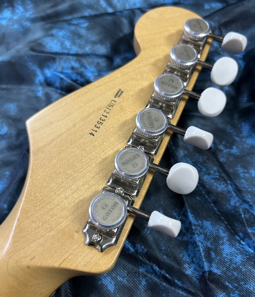 Description The guitar is equipped with a custom shop "Fat 50's Strat PU" pickup, giving it a more vintage-like tone. Other features include a two-point knife-edge bridge, a slightly slimmer and easy-to-grip C-shape neck, and a 22-fret medium jumbo setup, which is typical of the American Standard series, combining modern and vintage elements. The tuners have been upgraded to Gotoh SD91-MG-T. As for the sound, it delivers a bright, clear, and easily manageable traditional Stratocaster tone. The tone knob also works effectively on the bridge pickup. The body shows some minor wear consistent with its age, such as small scratches, but nothing that stands out significantly. One spring is a different type than the others, and the back panel is missing. A Fender rectangular black hard case is included. About Us If you have any problem, please contact us. Your satisfaction is important to us. We have results that I sold of tens of thousands of by Internet sale. We have pride ourselves in the Quality of items we offer. All our items has been checked by technician. As every seller dealing with pre-owned branded items in Japan we have as well license from local government to offer services of this kind. We are officially registered as legal business and we have to comply with all rules and regulations including tax requirements from the Japanese government. International Buyers - Please Note: Import duties, taxes and charges are not included in the item price or shipping charges. These charges are the buyer's responsibility. Please check with your country's customs office to determine what these additional costs will be prior to bidding/buying. These charges are normally collected by the delivering freight (shipping) company or when you pick the item up - do not confuse them for additional shipping charges. We do not mark merchandise values below value or mark items as “gifts” - US and International government regulations prohibit such behavior.
