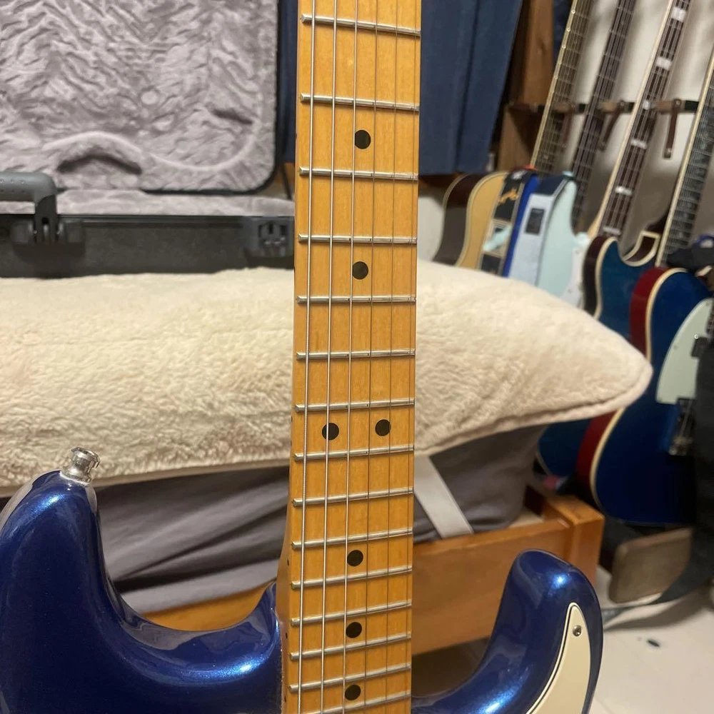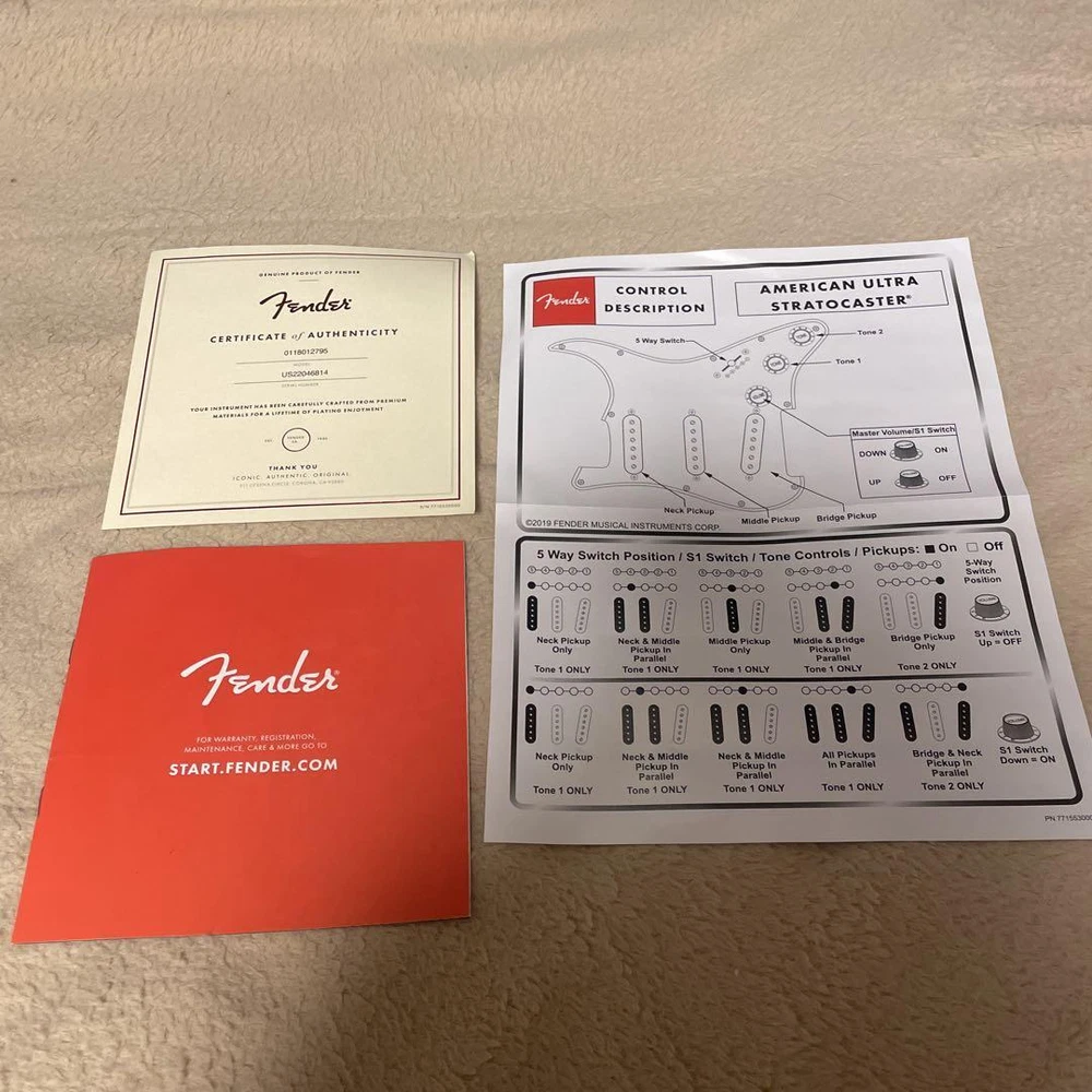【Notice】 ※You cannot cancel an order after it has been placed and before it has been shiped. (Recently, there have been many cancellations after ordering.Please coisider carefully before purchasing.) ---------------------------------------------------------------------------------------------- 【Item Description】 Fender American Ultra Stratocaster Cobra Blue It was only used at home. There are no scratches or dings on the body. There is one ding on the headstock. Please refer to the 7th image. It is in very good condition except for the ding on the headstock. The string height is very low, making it easy to play leads. Please feel free to ask any questions. -Specifications- Body: Alder Body Finish: Gloss Polyurethane Neck: Maple Neck Finish: Satin Urethane with Gloss Urethane Headstock Face Neck Shape: Modern "D" Scale Length: 25.5" (648 mm) Fingerboard: Maple Fingerboard Radius: 10" to 14" Compound Radius (254 mm to 355.6 mm) Number of Frets: 22 Fret Size: Medium Jumbo Nut Width: 1.685" (42.8 mm) Pickup: Ultra Noiseless Vintage Strat×3 Type: Stratocaster type ----------------------------------------------------------------------------------------------- 【Shipping】 Fedex priory (Free shipping, of course) ※Currently, economy service is not available. ※An additional shipping fee of 150 USD is required only for Australia. ※For Australia, we may use DHL. ※EMS is not available. 【Import Duties】 Import duties, taxes and charges are not included in the item price.These charges are buyer's responsibility. Please check with customs for these addtional costs before bidding or purchasing. Even if you ask us about Import duties, we cannot give you an exact amount.
