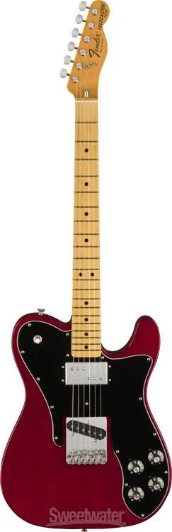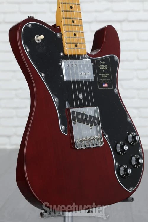 A Vintage-style, Humbucker-equipped Tele Custom The Fender American Vintage II 1977 Telecaster Custom is a meticulous reimagining of one of the company's earlier forays into humbucking pickups. The '77 Tele Custom includes a balanced-sounding solid alder body, while its year-specific Pure Vintage '77 Telecaster pickups yield everything from thick humbucker tones to jangly single-coil sounds with loads of twangy bite. You'll appreciate the effortless playability of this guitar's "C"-shaped, hard-rock maple neck and vintage-radius maple fingerboard. The American Vintage II 1977 Tele Custom is replete with period-correct appointments, including skirted plastic knobs, a 6-saddle bridge with steel barrel saddles, "F"-stamped tuning machines, a 3-bolt neck plate, and a head-turning gloss polyurethane finish on the body and neck. Owning an American Vintage II '77 Tele Custom is like owning a piece of Fender history. If you've yearned for a humbucker-equipped Tele, you'll find the American Vintage II 1977 Telecaster Custom eminently Sweetwater is an Authorized Fender Dealer Genuine New Item Sweetwater's 2-year warranty and 55 point inspection Fender American Vintage II 1977 Telecaster Custom Electric Guitar - Wine Solidbody Electric Guitar with Alder Body, Maple Neck, Maple Fingerboard, 1 Single-coil Pickup, and 1 Humbucking Pickup - Wine A Vintage-style, Humbucker-equipped Tele Custom The Fender American Vintage II 1977 Telecaster Custom is a meticulous reimagining of one of the company's earlier forays into humbucking pickups. The '77 Tele Custom includes a balanced-sounding solid alder body, while its year-specific Pure Vintage '77 Telecaster pickups yield everything from thick humbucker tones to jangly single-coil sounds with loads of twangy bite. You'll appreciate the effortless playability of this guitar's "C"-shaped, hard-rock maple neck and vintage-radius maple fingerboard. The American Vintage II 1977 Tele Custom is replete with period-correct appointments, including skirted plastic knobs, a 6-saddle bridge with steel barrel saddles, "F"-stamped tuning machines, a 3-bolt neck plate, and a head-turning gloss polyurethane finish on the body and neck. Owning an American Vintage II '77 Tele Custom is like owning a piece of Fender history. If you've yearned for a humbucker-equipped Tele, you'll find the American Vintage II 1977 Telecaster Custom eminently satisfying. Loaded with period-accurate appointments The American Vintage II 1977 Telecaster Custom is a spot-on re-creation of a Fender classic. This electric guitar features a solid alder body. This lightweight wood offers an incredibly balanced acoustic tone, yielding uniform quantities of lows, mids, and highs, and boasts a gorgeous gloss polyurethane finish. The 1977 Tele Custom's nickel/chrome hardware includes a 6-saddle bridge with slotted steel barrel saddles, "F"-stamped tuning machines, and a 3-bolt neck plate with Micro-Tilt. You also get skirted plastic control knobs with numbered indicators. Year-specific '77 Pure Vintage pickups, a period-correct neck shape, and vintage-radius fingerboard round out the American Vintage II 1977 Telecaster Custom's classic appointments. Year-specific Pure Vintage pickups When you plug the Fender American Vintage II 1977 Telecaster Custom into your favorite amplifier, you'll be transported straight back to '77. This solidbody electric guitar's Pure Vintage '77 Telecaster single-coil bridge pickup churns out the tight lows, balanced mids, and legendary twang you'd expect from an old-school Tele. In the neck position, you'll find a Seth Lover-designed Wide-Range humbucking pickup with large bobbins and threaded CuNiFe-rod magnets, which have been out of production since 1981. CuNiFe magnets are vital to achieving a period-accurate sound, one that can be best described as an amalgam of humbucker girth and signature Fender chime with distinctive hi-fi character. The Wide-Range humbucker also includes a chrome cover with a "3 3" exposed pole-piece design and an attention-grabbing Fender logo. The American Vintage II 1977 Tele Custom comes complete with independent volume and tone knobs for each pickup, plus a 3-position pickup toggle switch. Effortlessly playable neck When we first picked up the American Vintage II 1977 Telecaster Custom here at Sweetwater, we were blown away by its effortless playability. The '77 Tele Custom's "C"-shaped hard-rock maple neck vaunts Goldilocks dimensions — not too big, not too small — for an eminently comfortable playing experience. You also get a maple fingerboard with a vintage 7.25-inch radius and 21 vintage-tall frets, plus a bullet-style truss rod. The neck features a vintage tint, and it's finished with eye-catching gloss polyurethane. Fender American Vintage II 1977 Telecaster Custom Electric Guitar Features: A spot-on re-creation of a 1977 Telecaster Custom Solid alder body offers an incredibly balanced acoustic tone Pure Vintage '77 Telecaster single-coil bridge pickup churns out tight lows, balanced mids, and legendary twang Wide-Range humbucking neck pickup with authentic CuNiFe magnets Skirted plastic control knobs with numbered indicators; 3-position pickup toggle switch "C"-shaped hard-rock maple neck offers an eminently comfortable playing experience Maple fingerboard with a vintage, 7.25-inch radius and 21 vintage-tall frets; bullet-style truss rod 6-saddle bridge with slotted steel barrel saddles; "F"-stamped tuning machines; 3-bolt neck plate with Micro-Tilt Eye-catching gloss polyurethane finish on the body and neck Specification Detail Number of Strings 6 Left-/Right-handed Right-handed Body Type Solidbody Body Shape Telecaster Body Material Alder Color Wine Body Finish Gloss Polyurethane Neck Material Maple Neck Shape 1977 C Neck Joint 3-way Bolt-on Radius 7.25" Fingerboard Material Maple Fingerboard Inlay Black Dots Number of Frets 21, Vintage Tall Scale Length 25.5" Nut Width 1.650" Nut Material Bone Bridge/Tailpiece Pure Vintage 6-saddle T