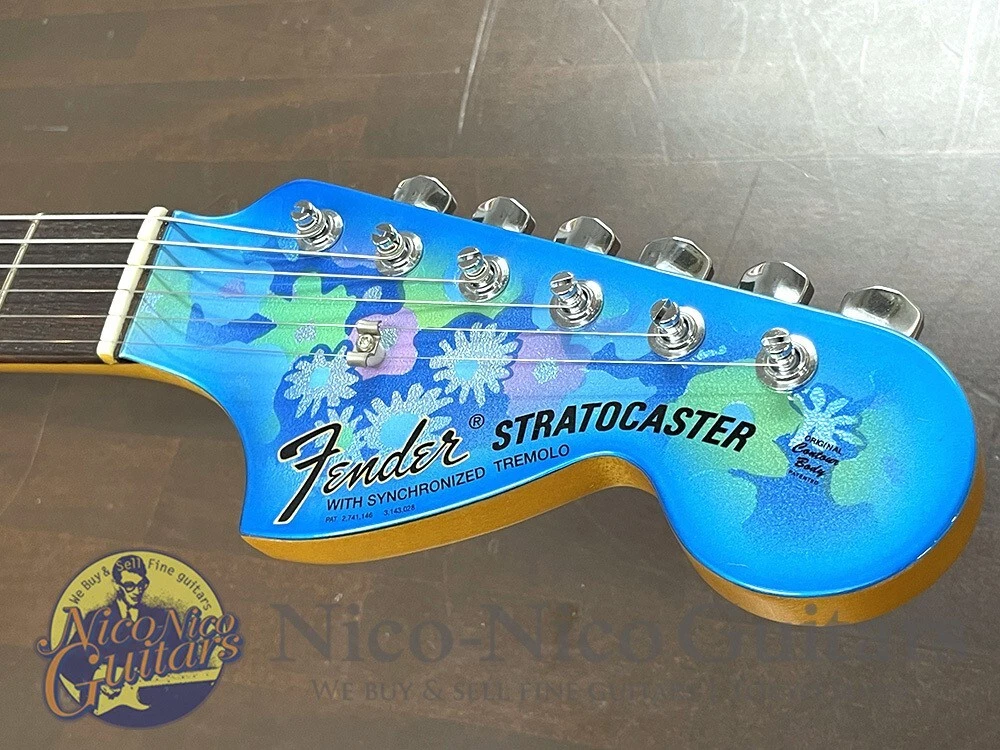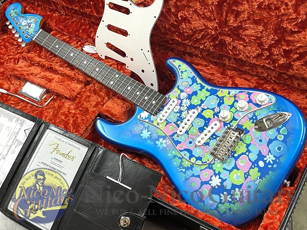 Description This is a 2022 Fender Custom Shop "1969 Stratocaster NOS" model, featuring the unique Blue Flower and Matching Headstock design. It faithfully replicates the 1969 specifications, including the large headstock and F-key tuners, while maintaining a pristine, non-relic state as a "N.O.S. (New Old Stock)" model. The neck shape is the relatively thick 1969 "U" profile, with a flat 12-inch radius fretboard and vintage-style narrow, low frets. The pickups are Fat'60s Strat Single Coils, and the controls consist of volume, tone, and a blender knob (which mixes the front pickup when the bridge pickup is selected and vice versa). The cavity has been treated with conductive paint for noise reduction. There are a few small imperfections: a slight paint chip with a dent near the body edge (around the elbow area), and a small dent on the body side near the high E string. The frets show little to no wear, and the neck and truss rod are in excellent condition. A white pickguard is included. Body Material: Alder Neck Material: Maple Fingerboard Material: Rosewood Fingerboard Radius: 12R Frets: Vintage Upgrade 45085 Weight: 3.70 kg Case: Original Hard Case Accessories: Certificate of Authenticity About Us If you have any problem, please contact us. Your satisfaction is important to us. We have results that I sold of tens of thousands of by Internet sale. We have pride ourselves in the Quality of items we offer. All our items has been checked by technician. As every seller dealing with pre-owned branded items in Japan we have as well license from local government to offer services of this kind. We are officially registered as legal business and we have to comply with all rules and regulations including tax requirements from the Japanese government. International Buyers - Please Note: Import duties, taxes and charges are not included in the item price or shipping charges. These charges are the buyer's responsibility. Please check with your country's customs office to determine what these additional costs will be prior to bidding/buying. These charges are normally collected by the delivering freight (shipping) company or when you pick the item up - do not confuse them for additional shipping charges. We do not mark merchandise values below value or mark items as “gifts” - US and International government regulations prohibit such behavior.